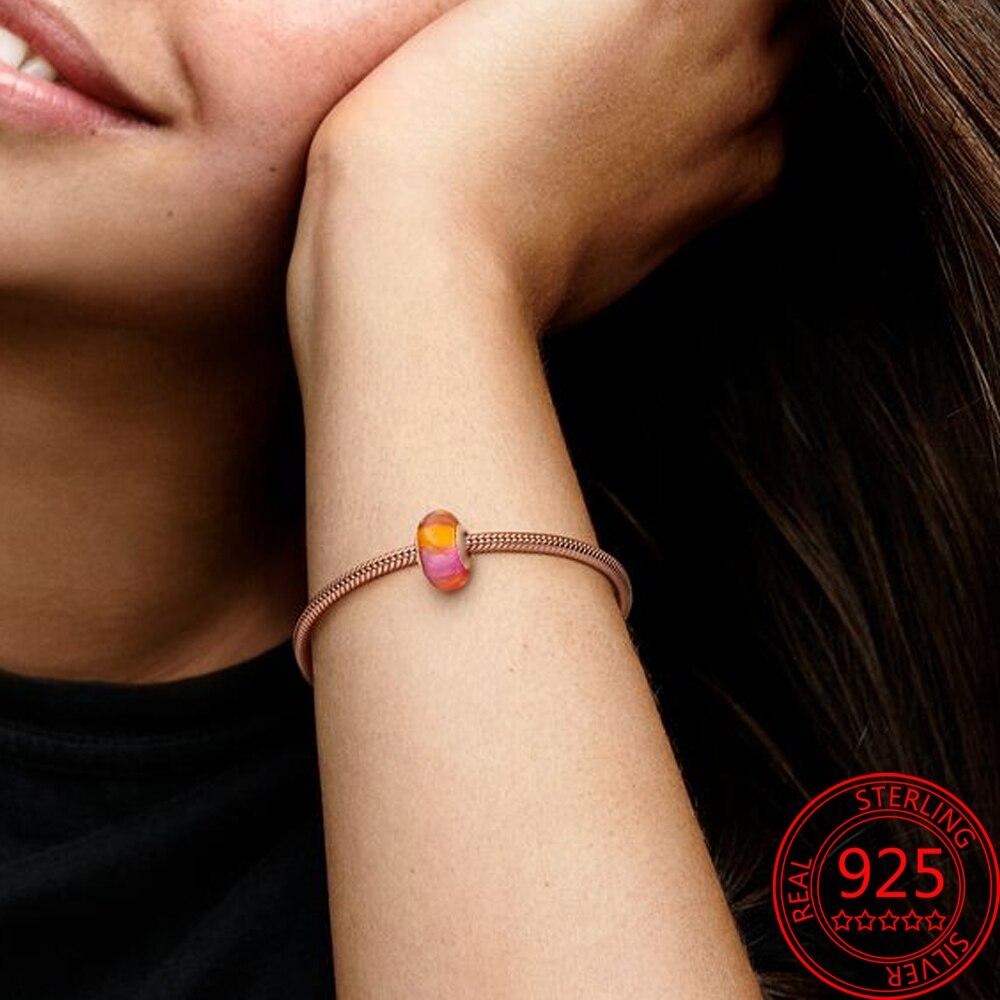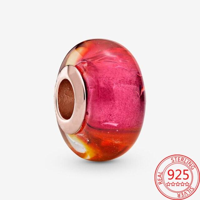 Новые бусины из стерлингового серебра S925 Murano с красным оранжевым градиентом, подходят для модного браслета, женские бусины Diy