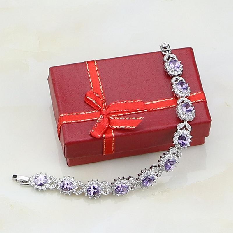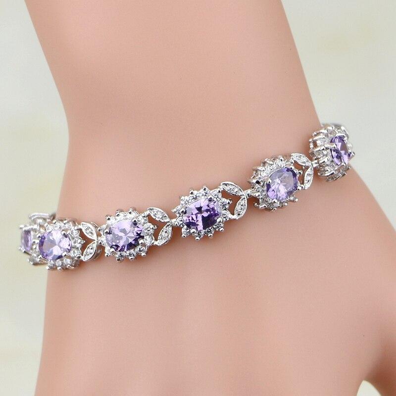 Панк 925 стерлингового серебра ювелирные изделия браслеты для женщин фиолетовый циркон белый кристалл шарм свадебный браслет