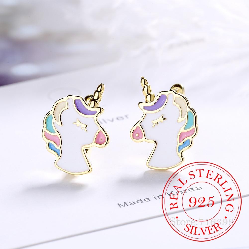 Настоящие серьги из стерлингового серебра 925 пробы, милые серьги-гвоздики в виде единорога для женщин, девочек, дочерей, праздничные украшения, подарок лучшему другу