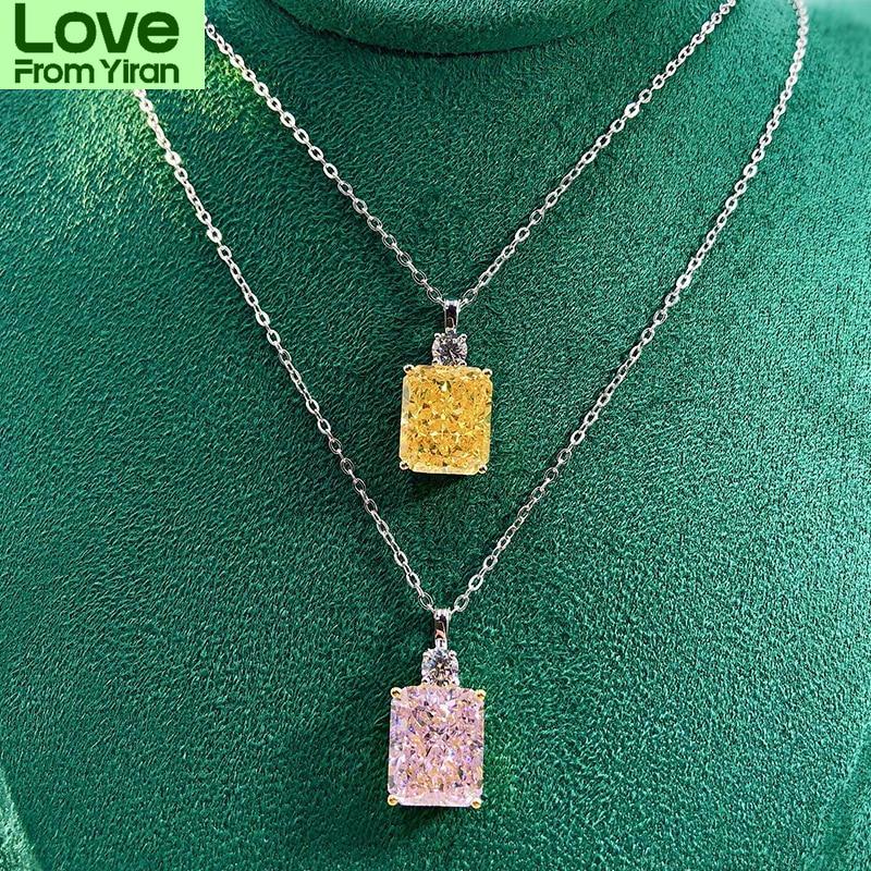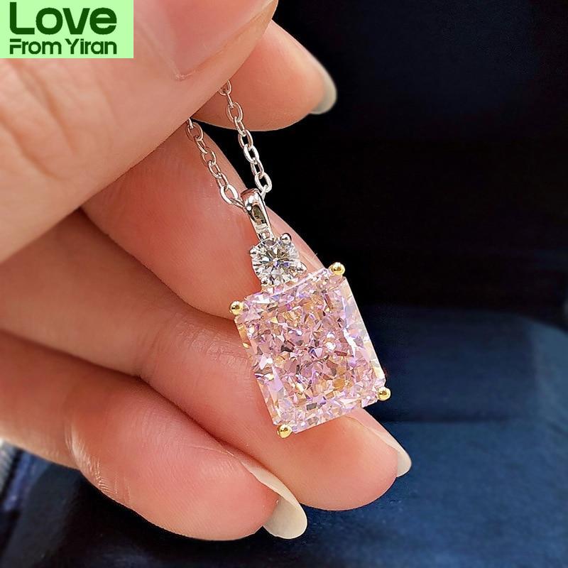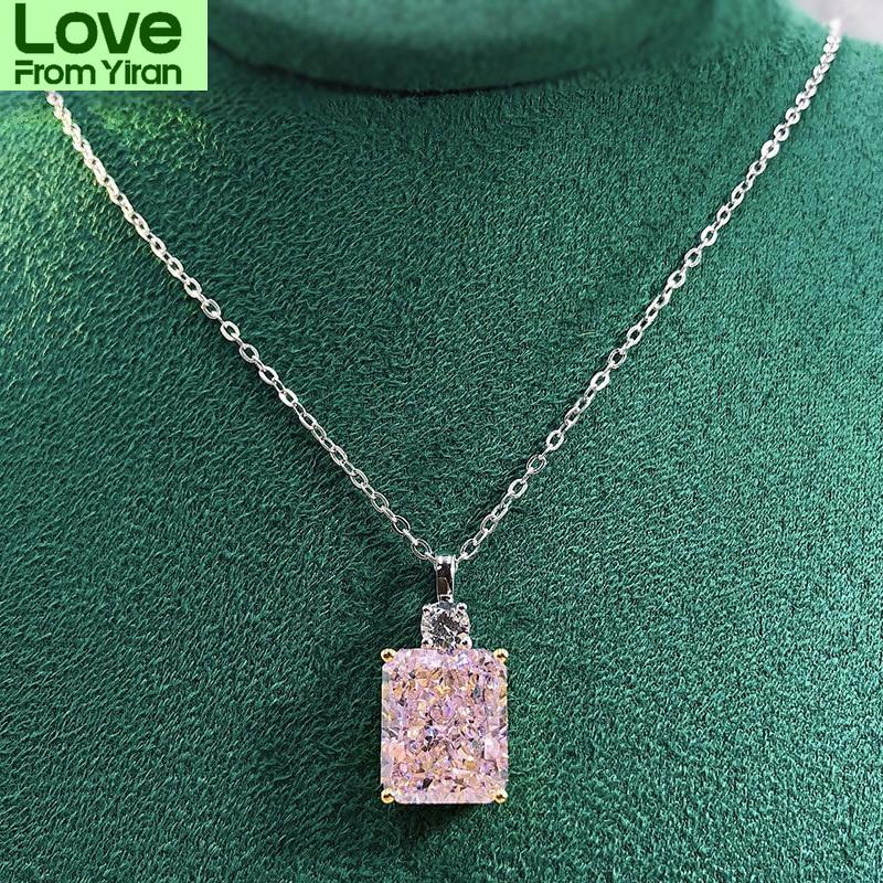 100% стерлингового серебра 925 пробы 10 * 12 мм розовое высокоуглеродистое бриллиантовое ожерелье с подвеской для женщин сверкающее свадебное украшение для вечеринки