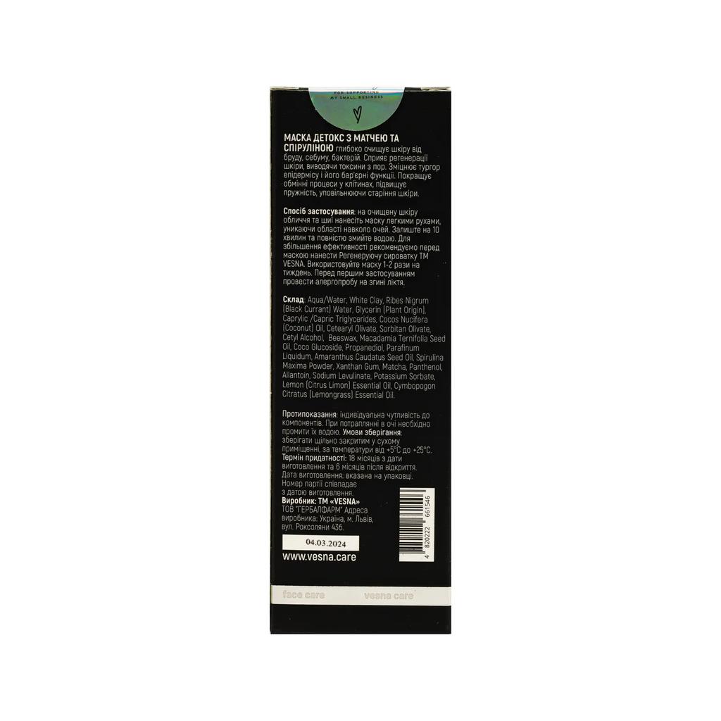 Выберите маску Детокс со спирулиной и матчем от VESNA, чтобы ваша кожа всегда оставалась чистой, здоровой и сияющей. Сохраните красоту и естественную силу вашей кожи.
