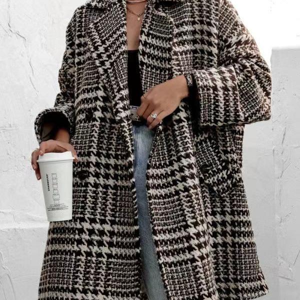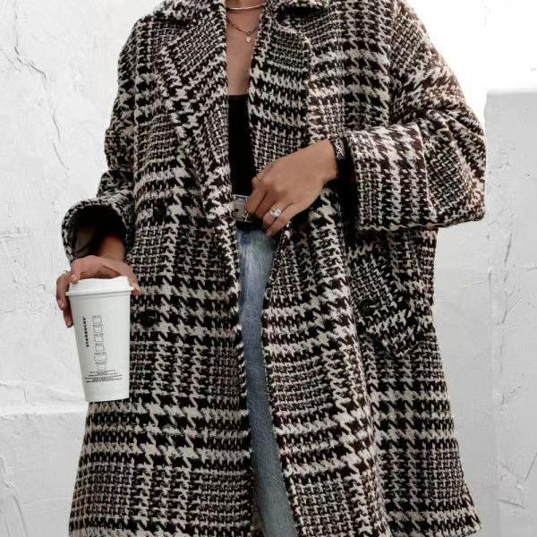 Осенне-зимнее толстое шерстяное пальто с подкладочной тканью Женская куртка