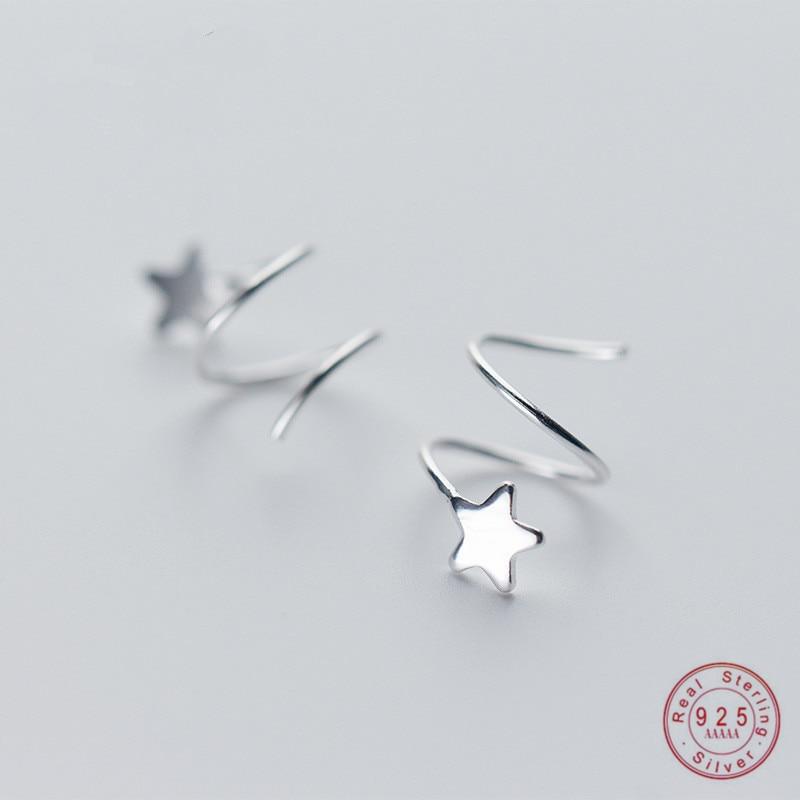 925 стерлингового серебра пентаграмма звезда ушная кость пряжка вращающаяся волна мини-серьги-гвоздики для женщин персональные ювелирные изделия