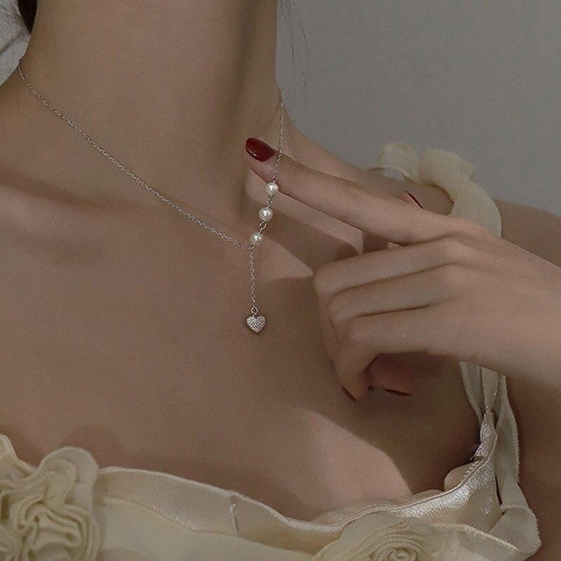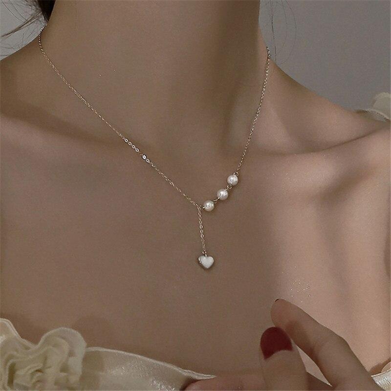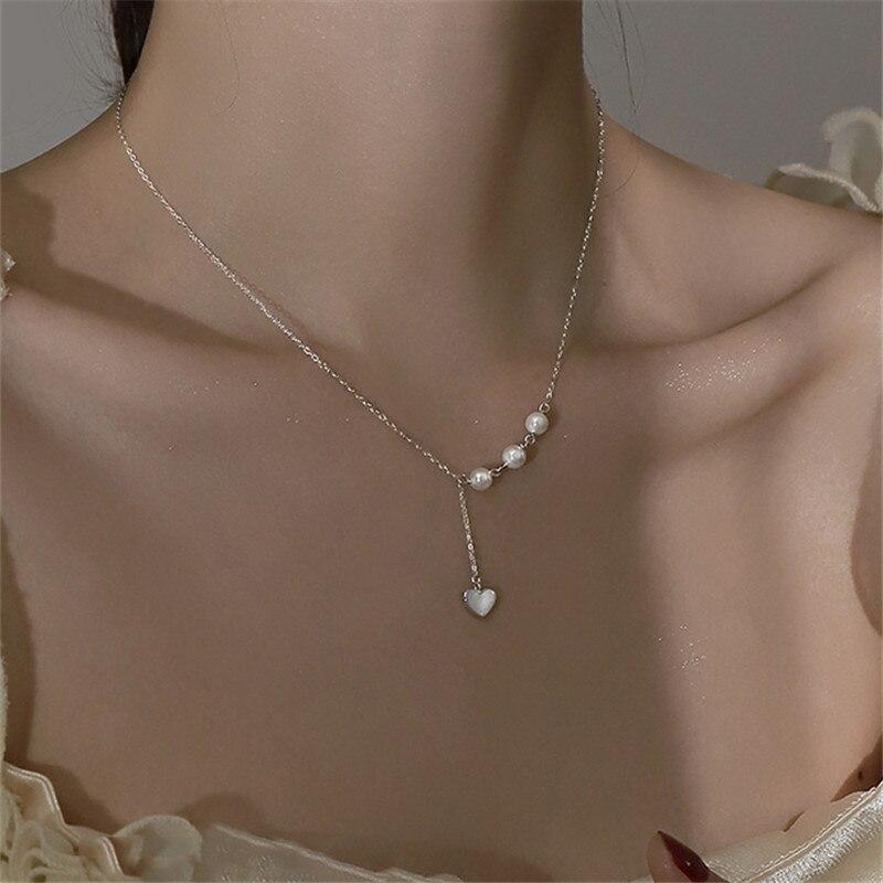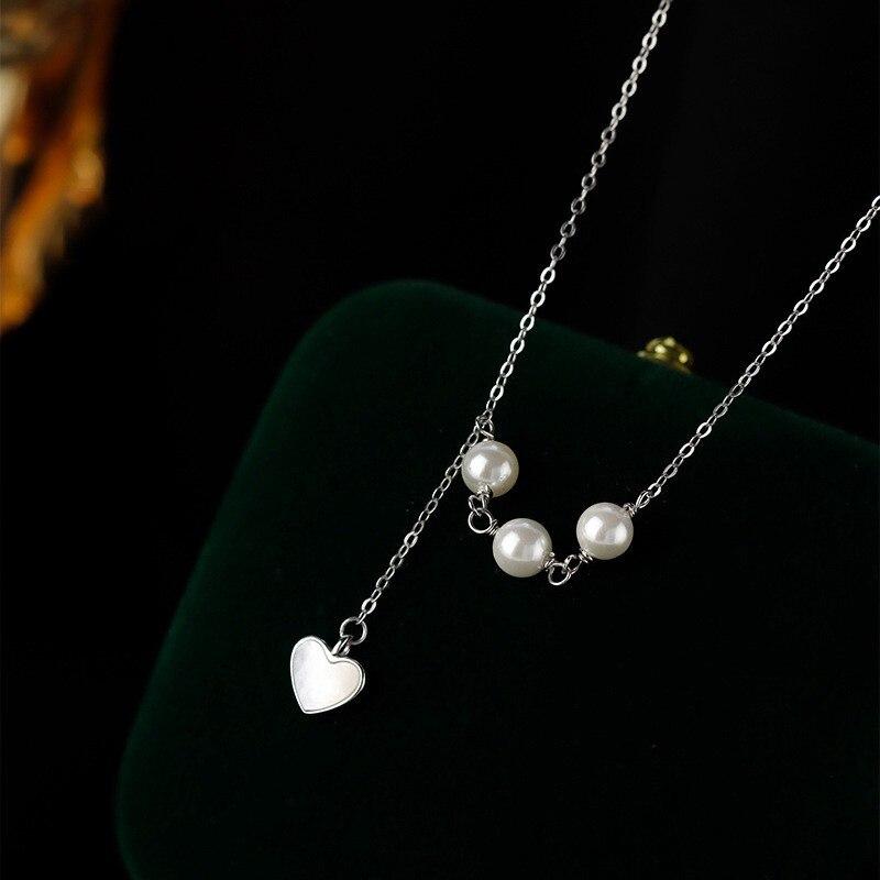 925 стерлингового серебра сердечко подвеска круглый жемчуг ожерелье для женщин свадебные украшения аксессуары колье цепочка