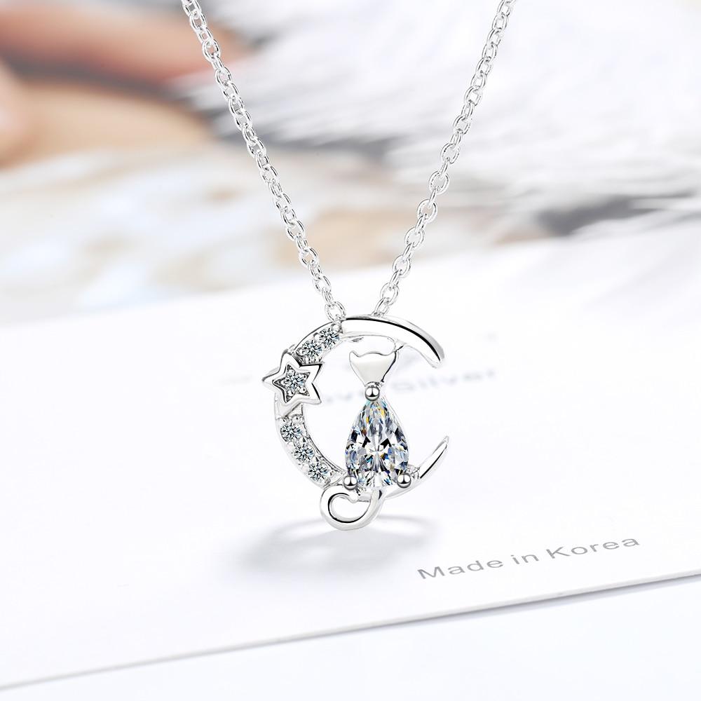 925 стерлингового серебра милый луна звезда кошка подвеска ожерелье сверкающий кубический циркон ключичная цепочка ювелирные изделия для женщин S-N521 — купить товар онлайн с бесплатной доставкой по всему миру!