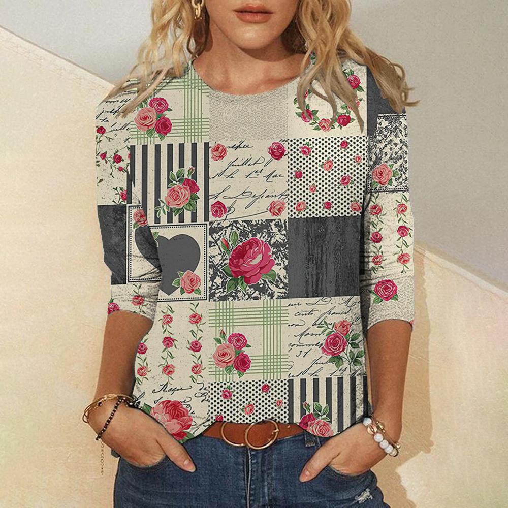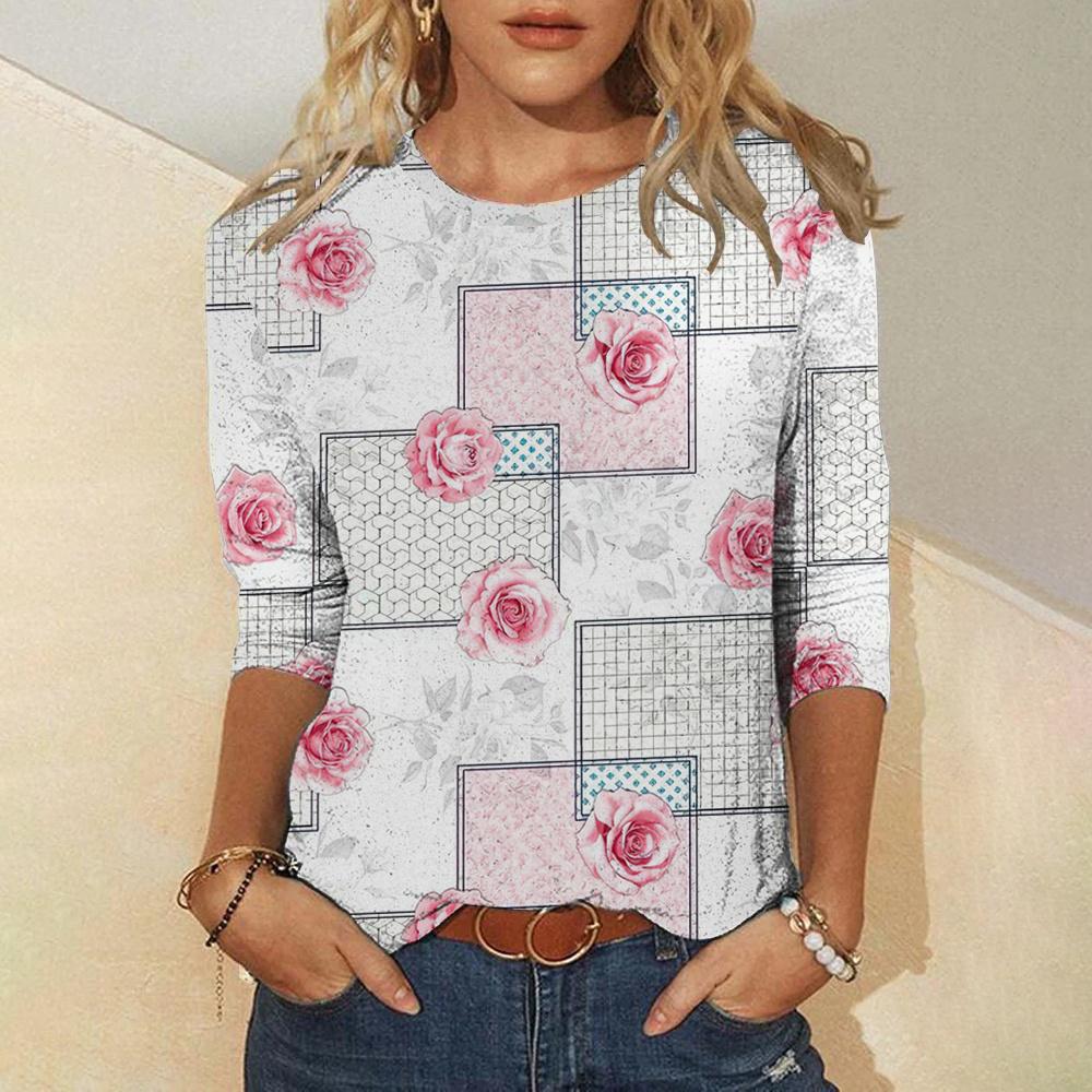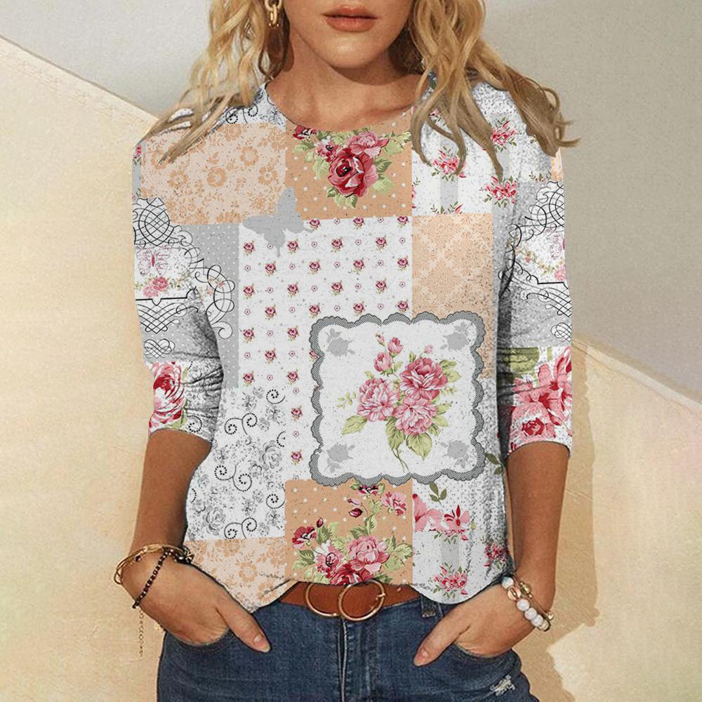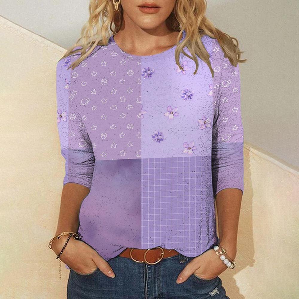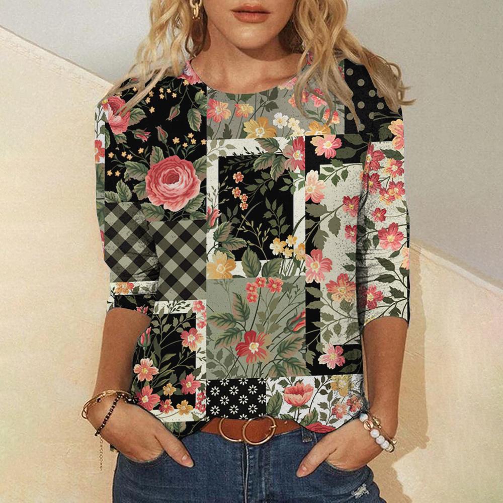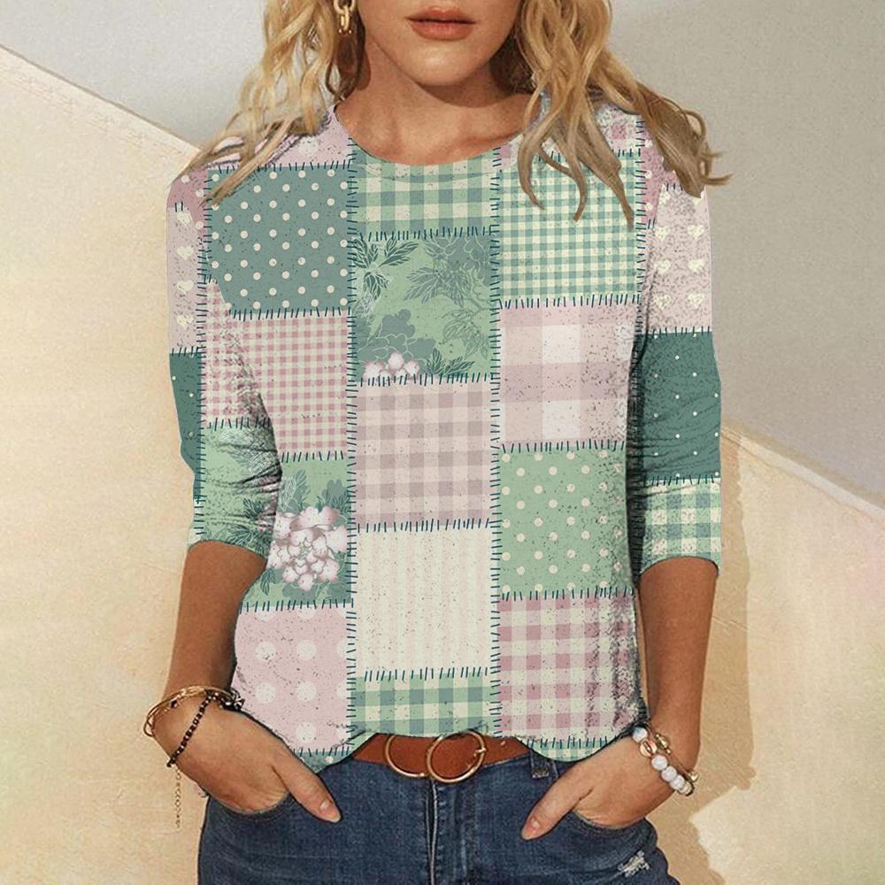 Женская футболка с длинным рукавом и принтом в клетку в стиле ретро, повседневная блузка с круглым вырезом для женщин, модная одежда с принтом 2024 года, новинка на осень/зиму