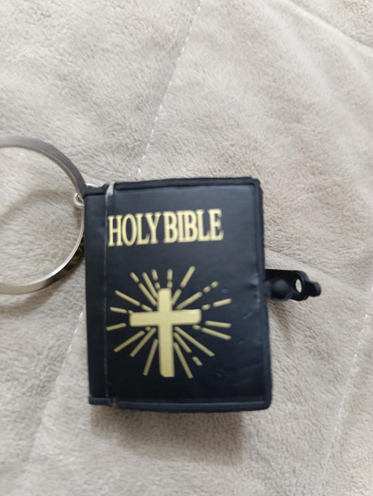 Брелок с миниатюрной Библией. Внутри и вправду есть страницы из Библии, только на английском. Очень понравился, спасибо продавцу