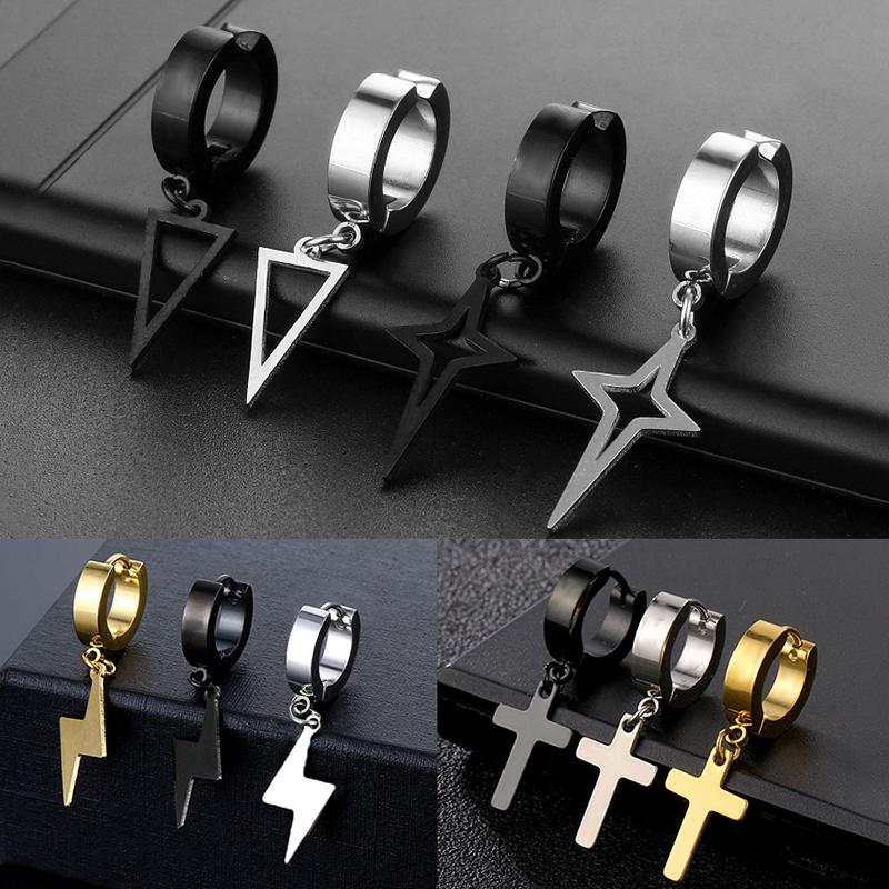 1 шт., унисекс, нержавеющая сталь, панк, мужские, черные, клипсы, геометрические, треугольные, звездные, подвесные, серьги, женские, готические, ювелирные изделия