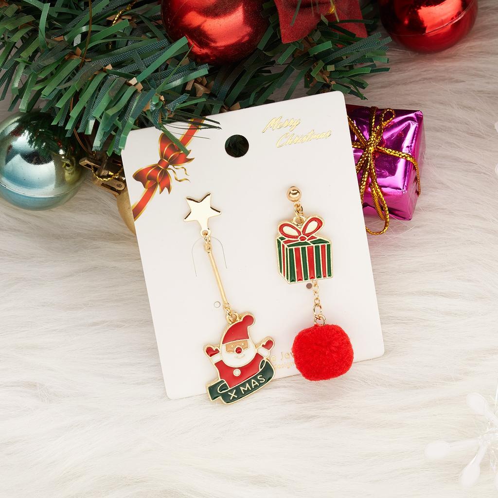 Модный новый рождественский подарок Санта-Клаусу, плюшевые серьги-шарики, кисточки, асимметричные серьги-подвески из сплава для женщин и девочек, подарок на Новый год