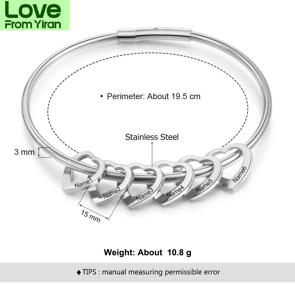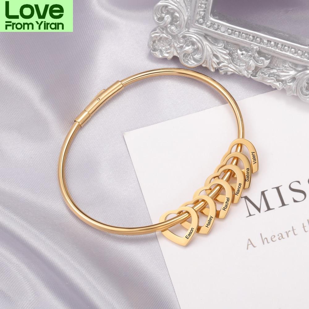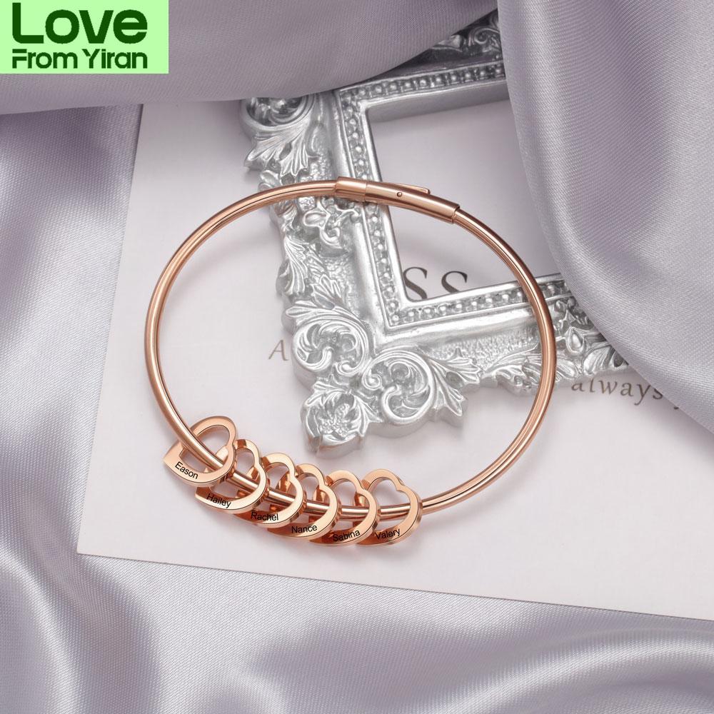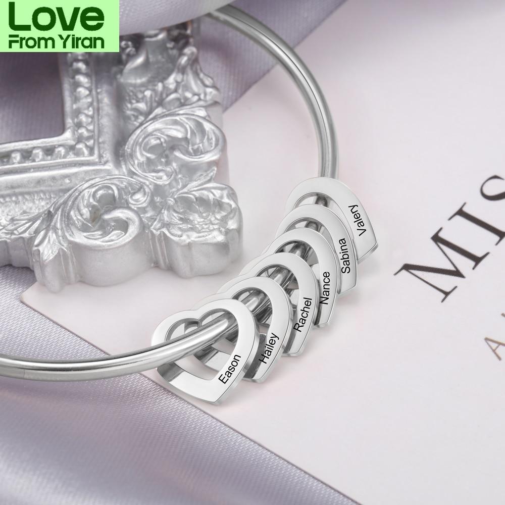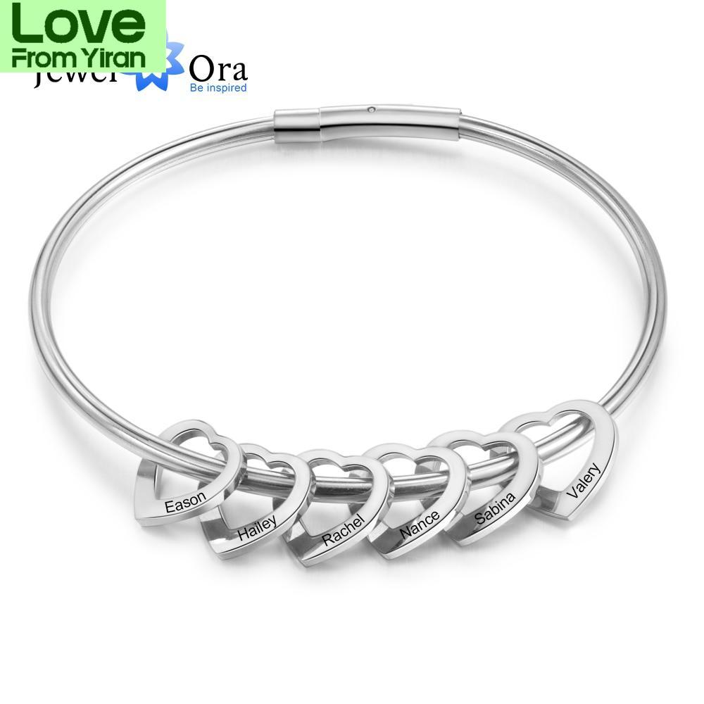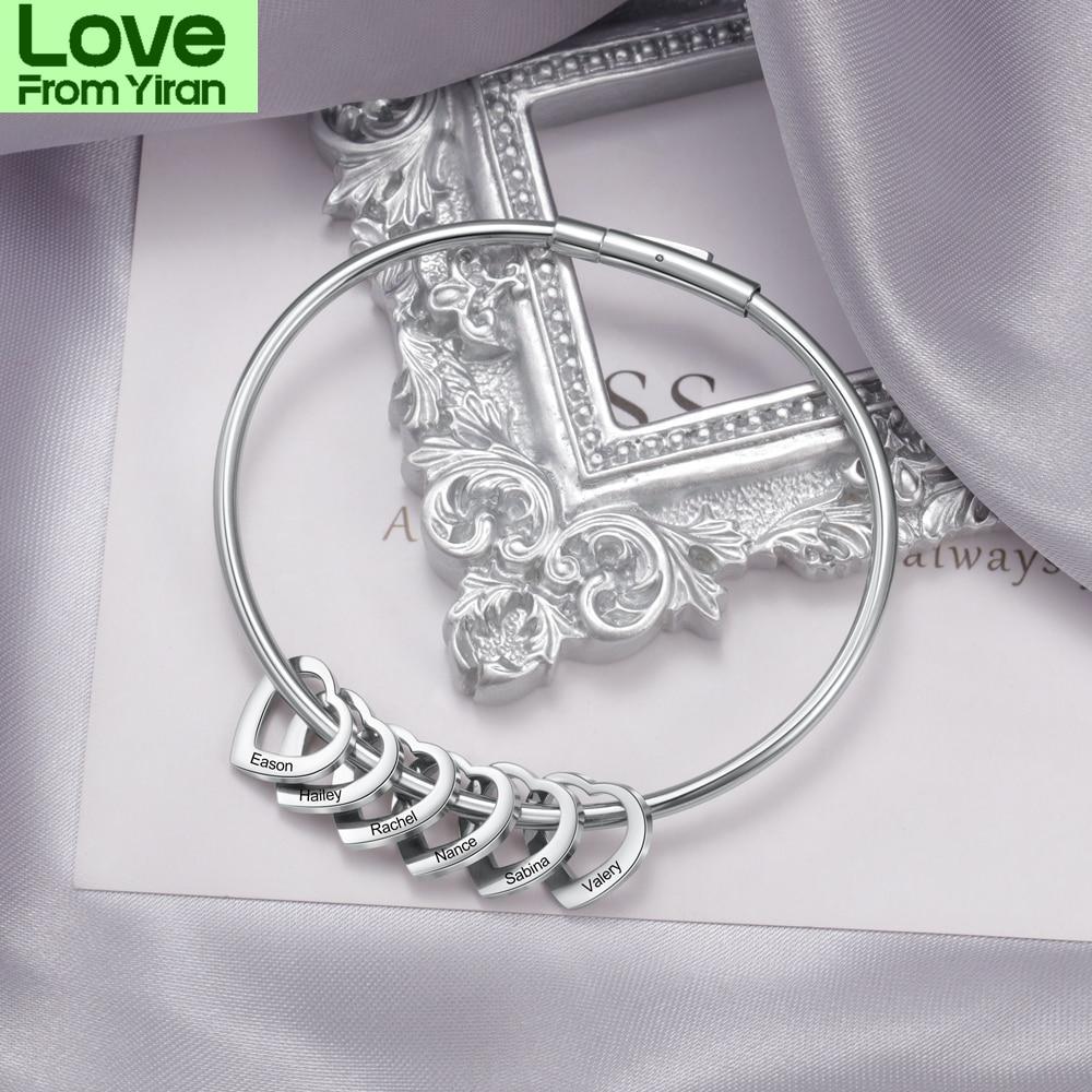 Персонализированные гравированные 2-6 имен браслеты в форме сердца для женщин индивидуальные браслеты из нержавеющей стали и браслеты подарки для семьи