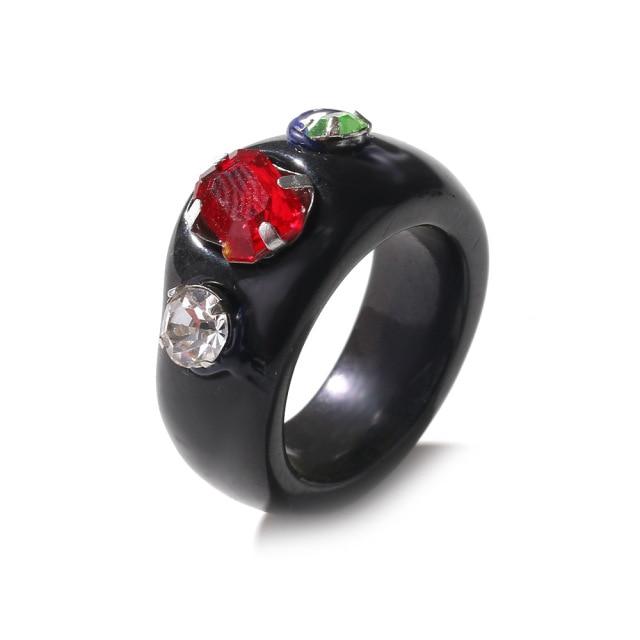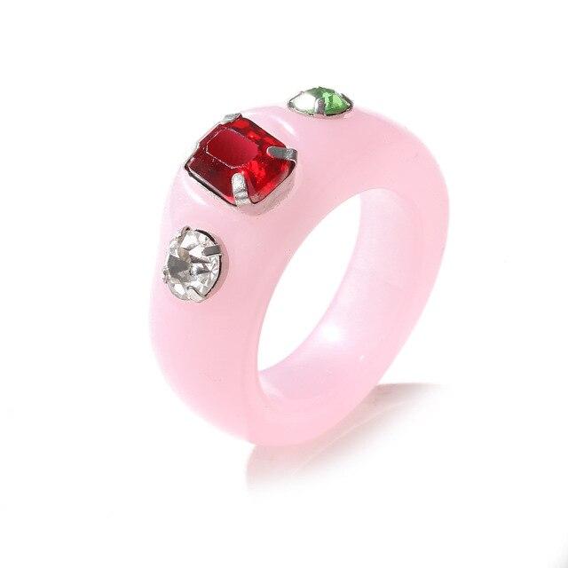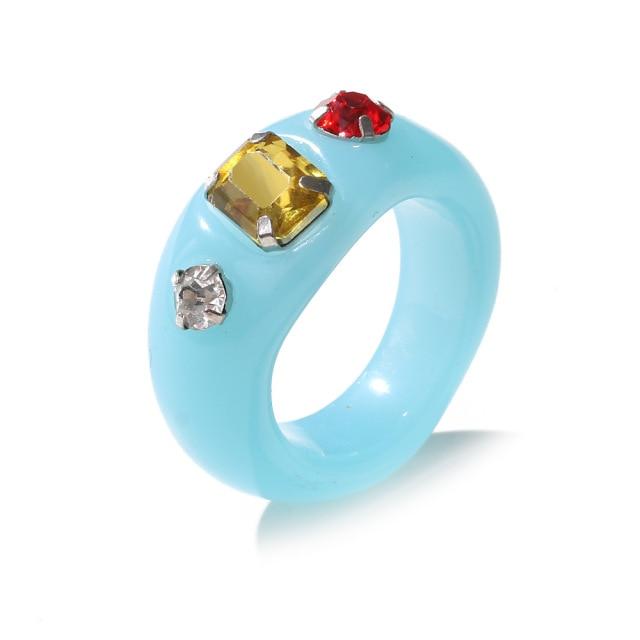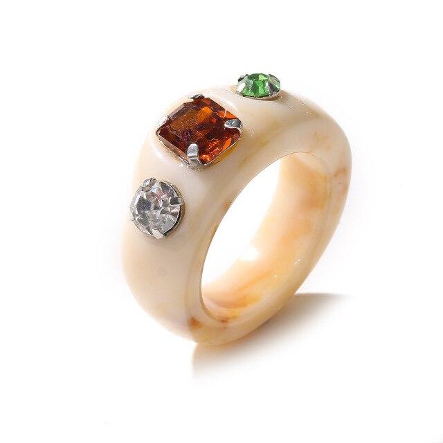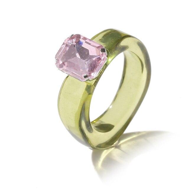 Модные цветные женские кольца настроения из смолы, винтажные простые акриловые кольца со стразами, геометрические хип-хоп пластиковые кольца, ювелирные изделия