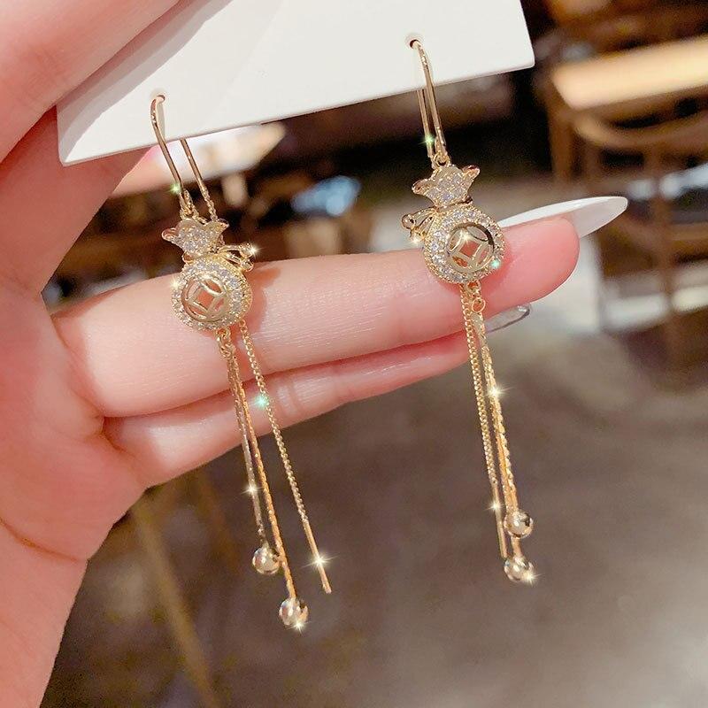 Женские серьги Пустой мешок денег Ухо Линия Длинные кисточки Ухо Капли