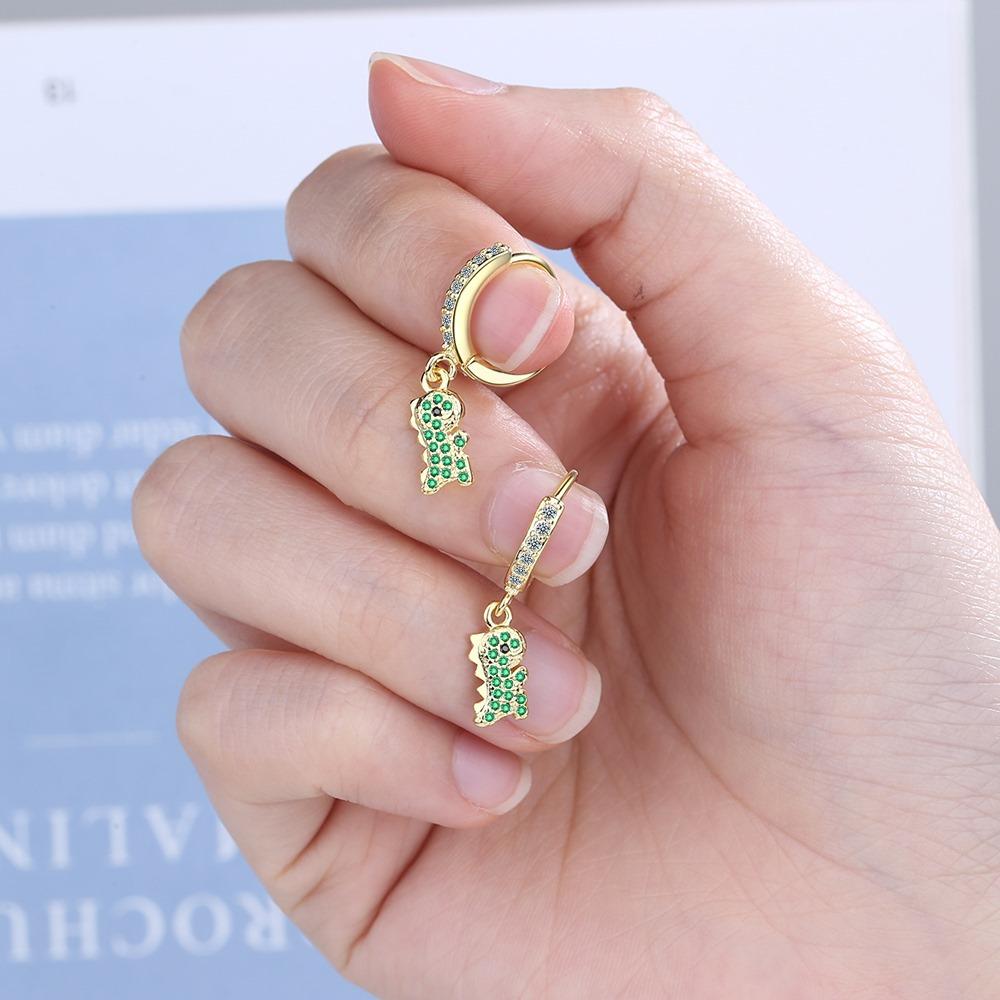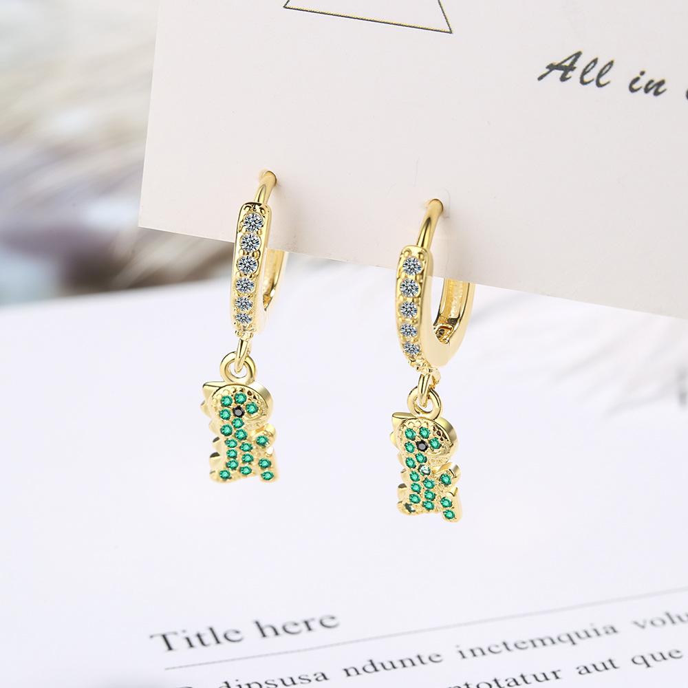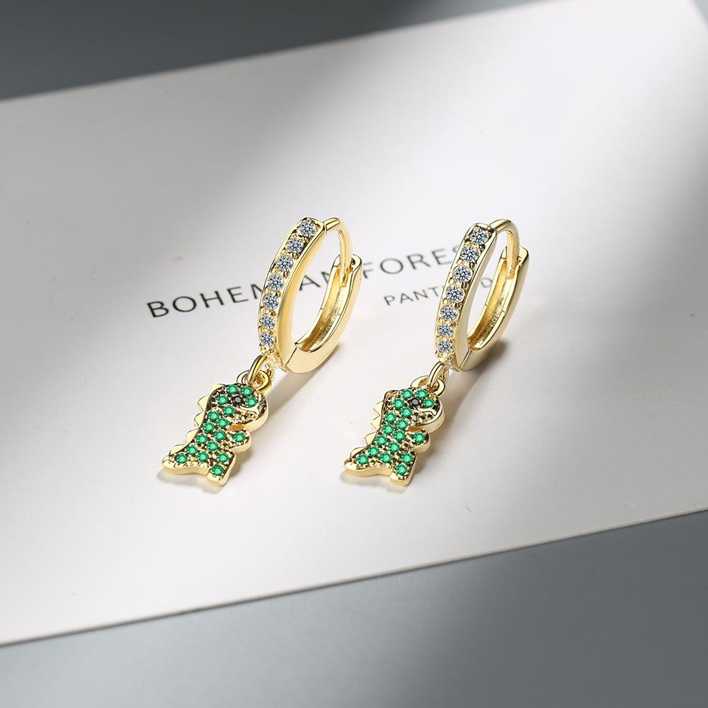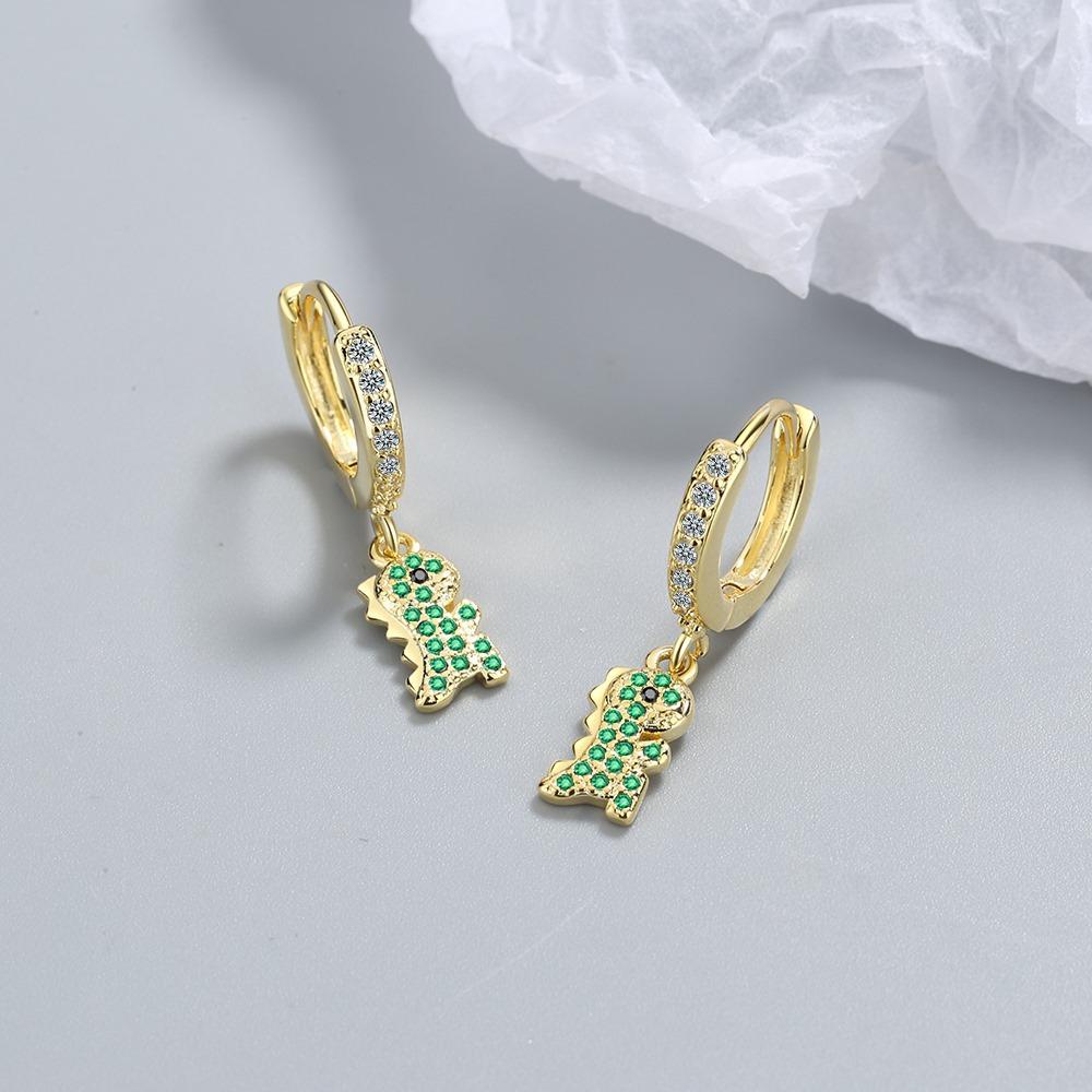 Изысканные ювелирные изделия, золотые серьги из стерлингового серебра 925 пробы с зелеными кристаллами, милые серьги с динозаврами, корейские простые висячие серьги для девочек