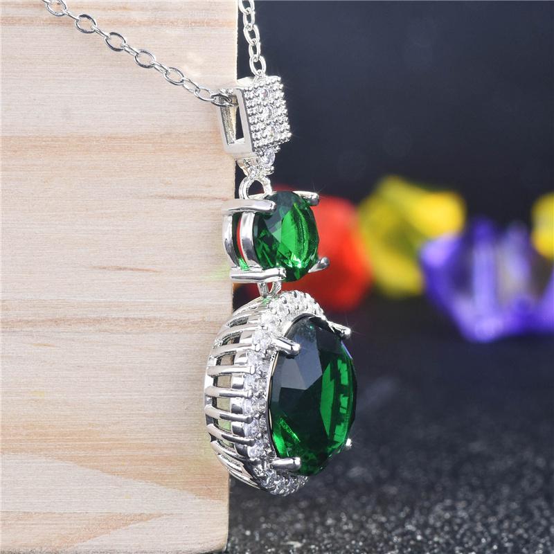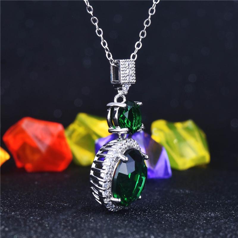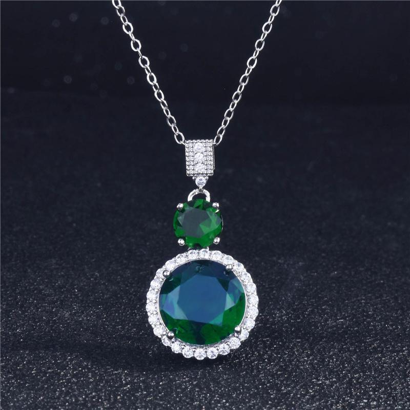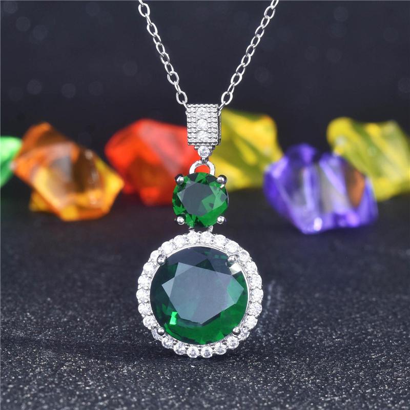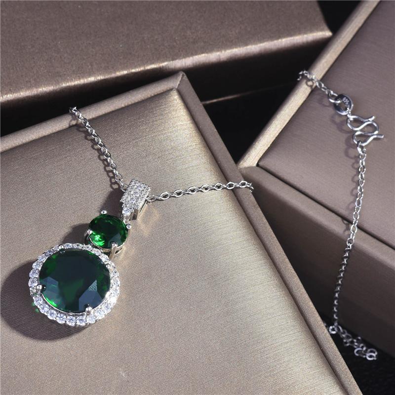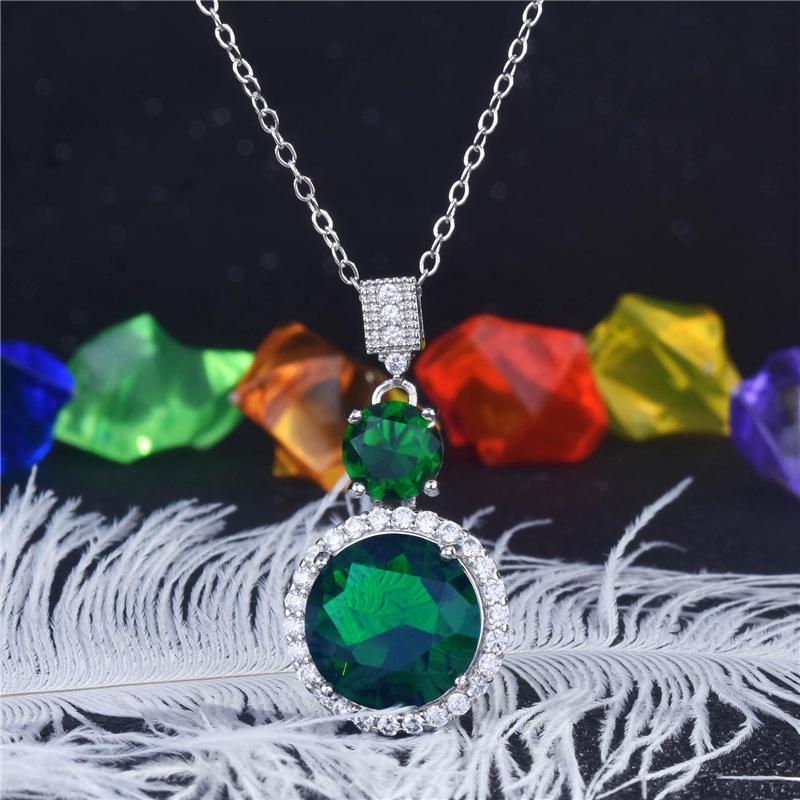 Винтажное хрустальное зеленое круглое ожерелье с подвеской для женщин, ювелирные изделия, новое поступление, серебряное 925-пробное колье-чокер для леди, подарок на помолвку