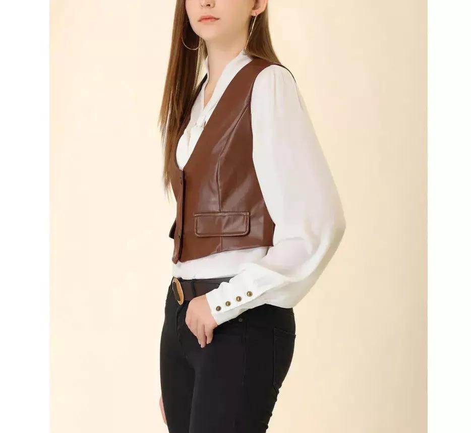 AL KHALID вечерние коричневые кожаные стильные пуговицы жилет пальто жилет пальто овчины вестерн для женщин