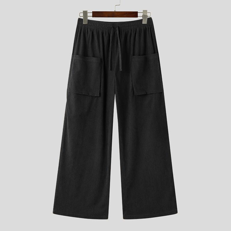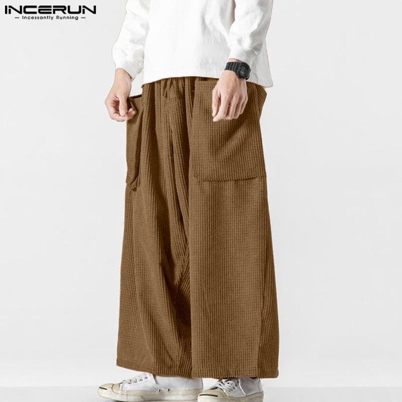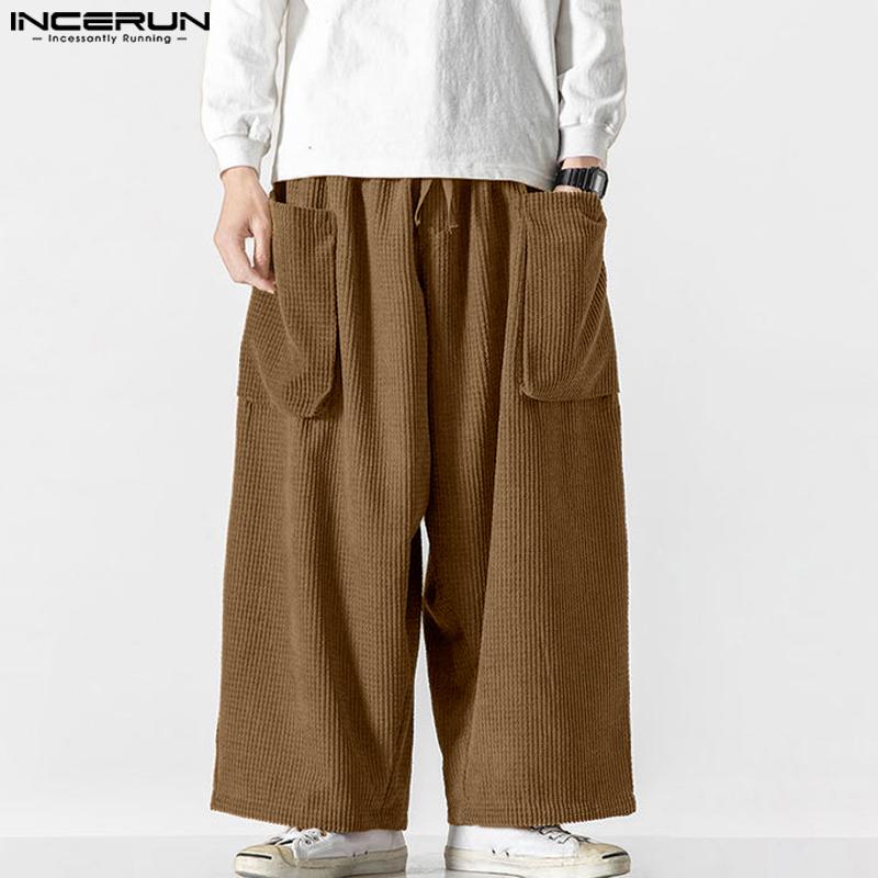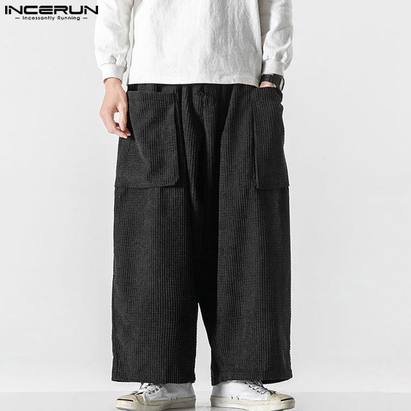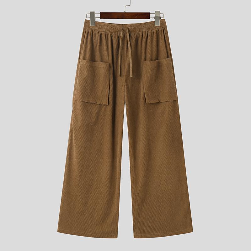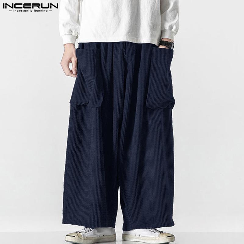 INCERUN Мужские осенние вельветовые брюки с эластичной резинкой на талии, повседневные однотонные прямые широкие брюки