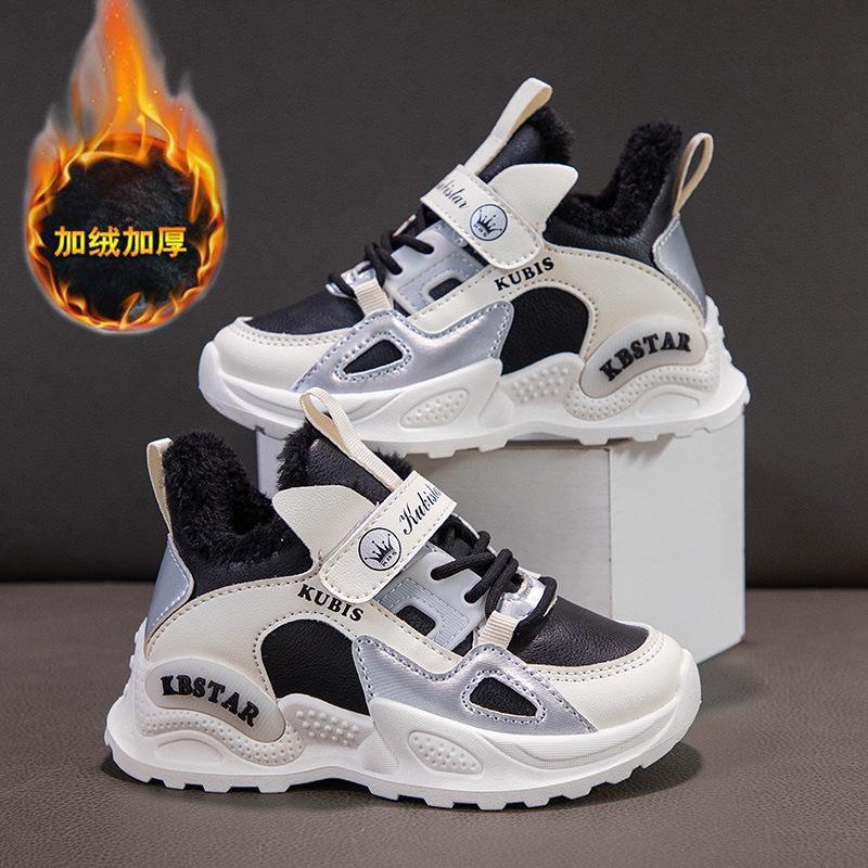 Спортивная обувь для девочек, новые зимние кроссовки с шерстяной подкладкой, для мальчиков начальной школы, хлопковая обувь для девочек, водонепроницаемая