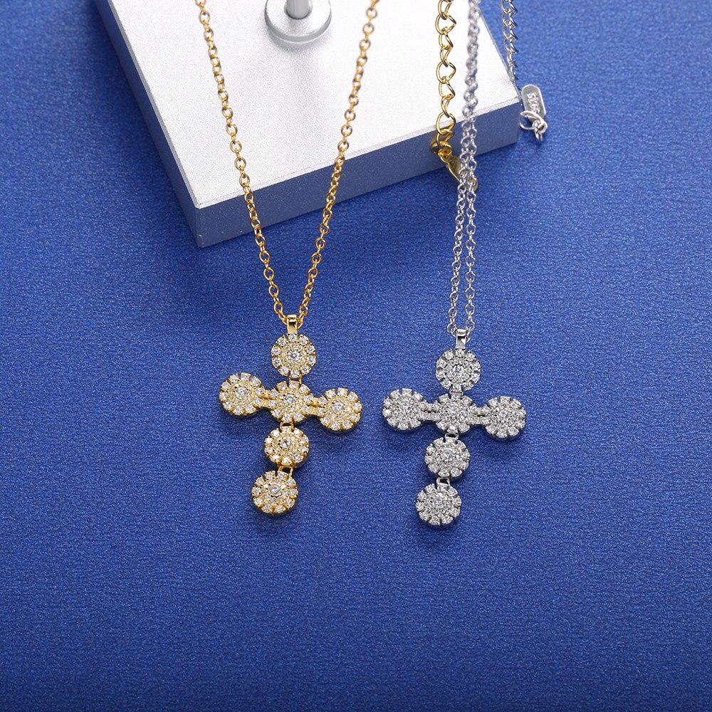 Slovecabin 925 пробы стерлингового серебра длинная цепь D-образный крест цветы кулон ожерелье с прозрачным фианитом корейские женские роскошные ювелирные изделия бренда