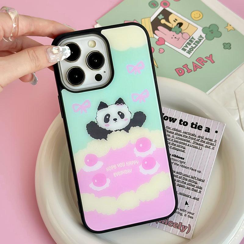 Чехол для iPhone 16, 15, 14, матовый черный, совместимый и подходит для 13/12 promax, милая панда