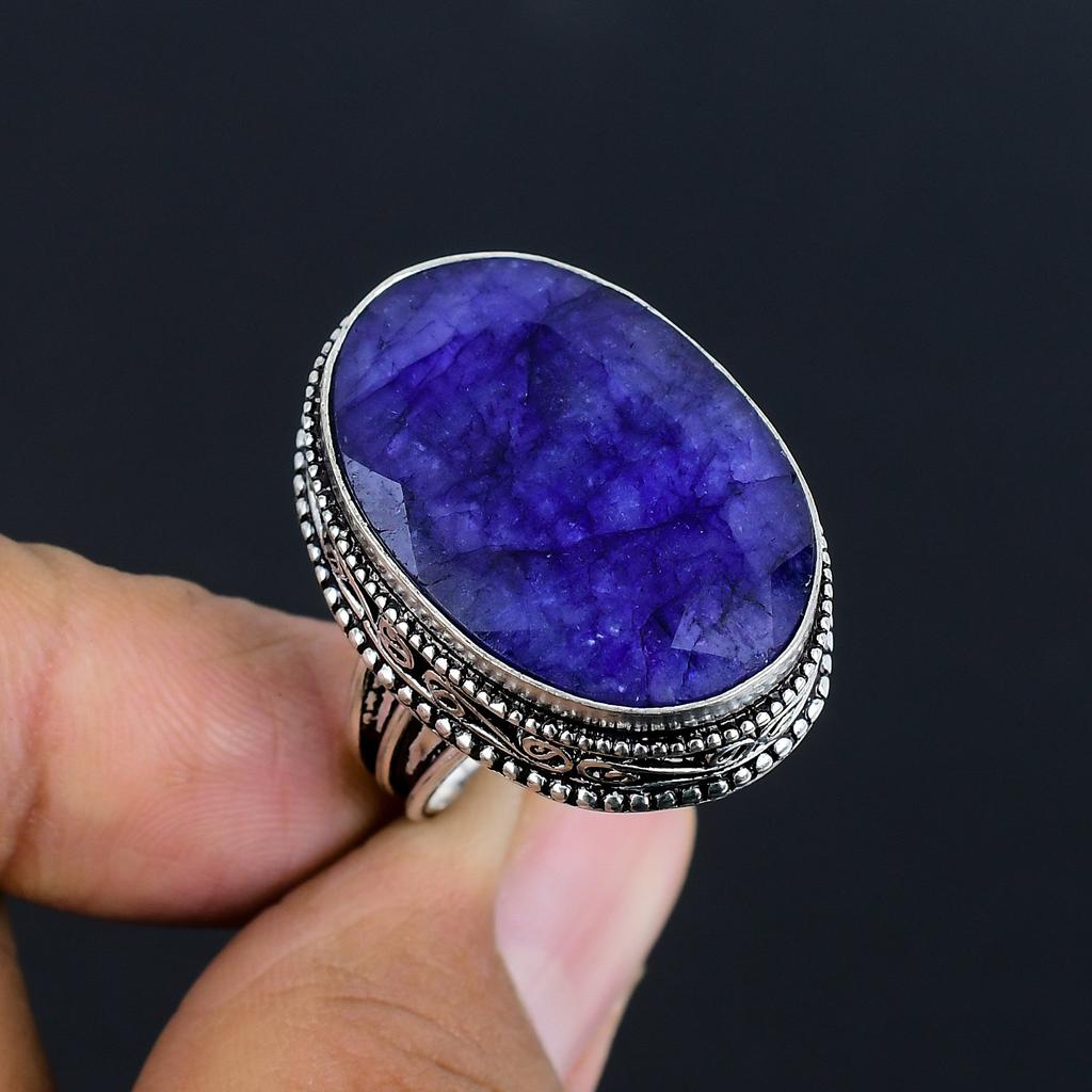 Сапфир(Смоделированный) Кольцо из серебра 925 пробы с драгоценными камнями, размер 9 — купить товар онлайн с бесплатной доставкой до всему миру!
