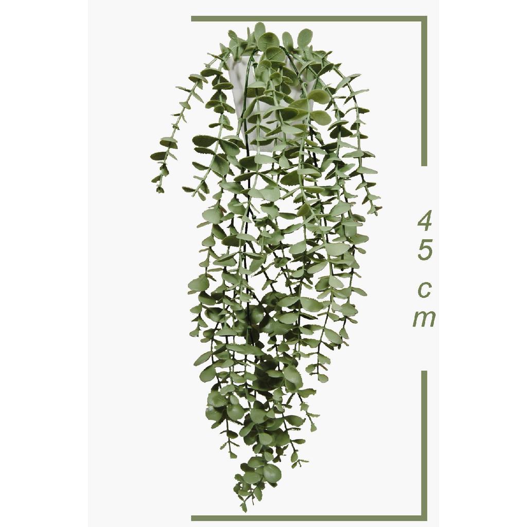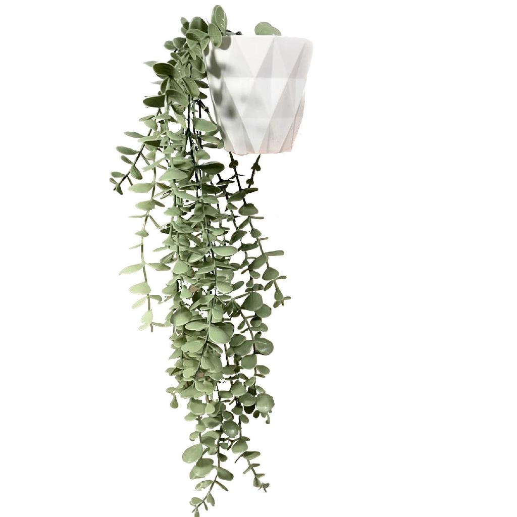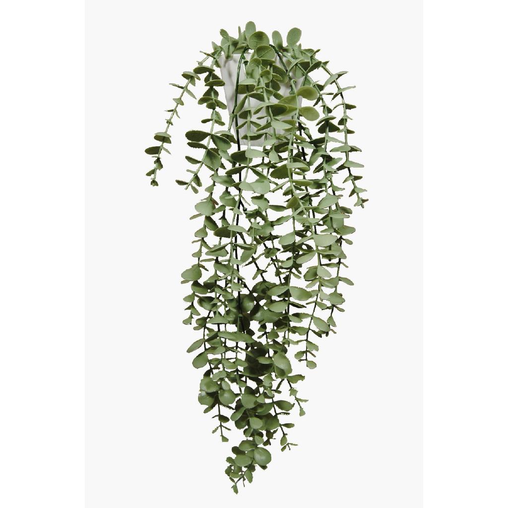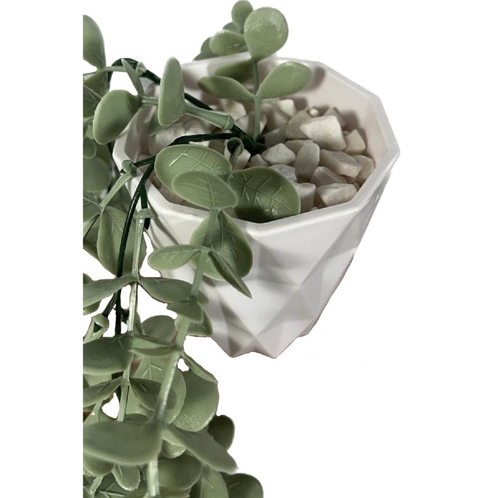 Artificial Flower Moblen Mica Diamond Pastel Green Eucalyptus Pendant In A White Pot