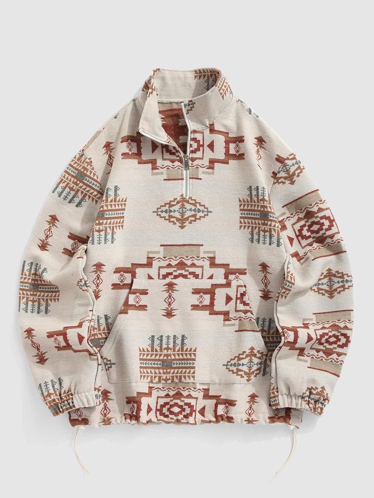 ZAFUL Мужская винтажная шерстяная толстовка-кенгуру с этническим ацтекским принтом и карманом на четвертной молнии — купить товар онлайн с бесплатной доставкой по всему миру!