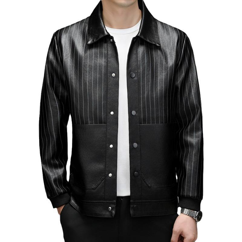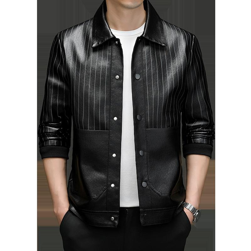 Осенью и зимой новая кожаная куртка мужская модная повседневная легкая деловая куртка с лацканами плюс бархат сезонная удобная и теплая тонкая кожаная куртка