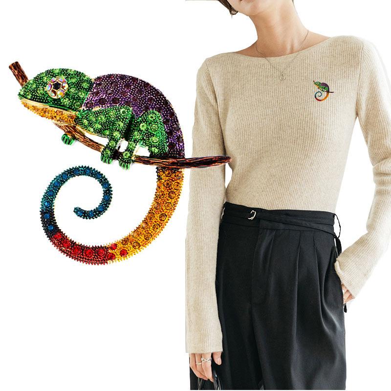 Большая брошь в виде ящерицы-хамелеона, булавка в виде животного, модные украшения со стразами, эмалевые аксессуары, украшения, 3 цвета на выбор
