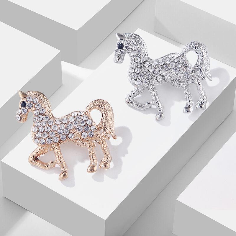 Модные броши в виде лошади со стразами, металлические хрустальные корсажи, воротники для костюмов и рубашек, роскошные броши, ювелирные аксессуары