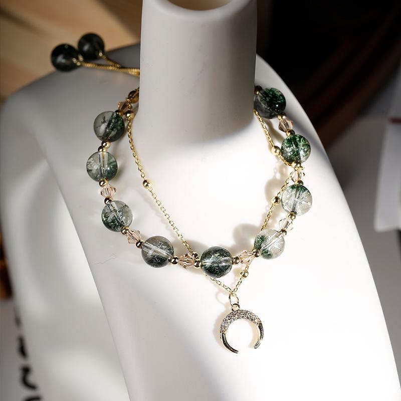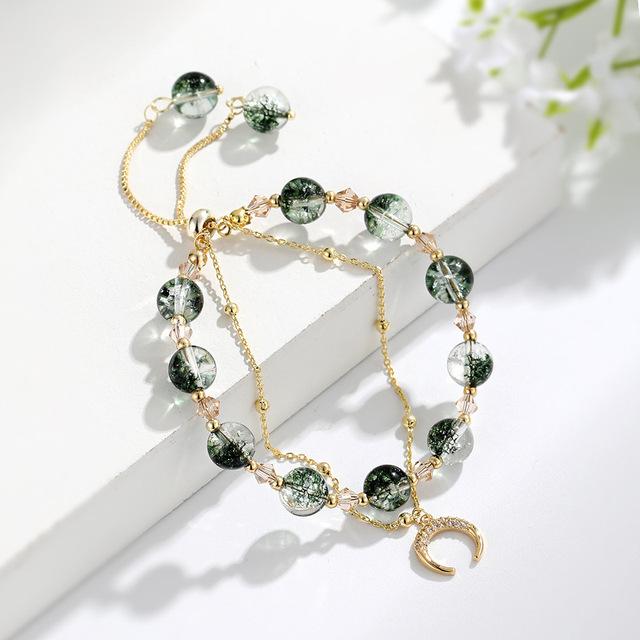 Браслет из натурального зеленого кристалла с привидениями, милый браслет с подвесками из циркония и кролика для женщин, ювелирный подарок, простой браслет с луной в тренде