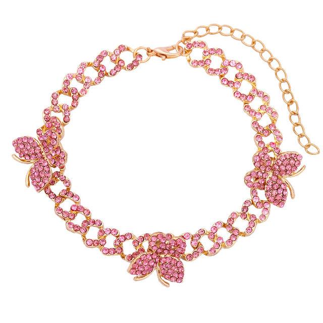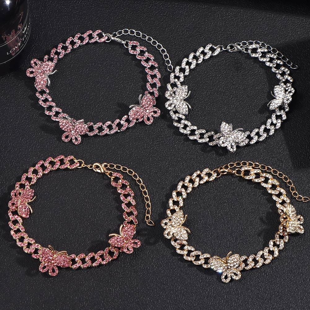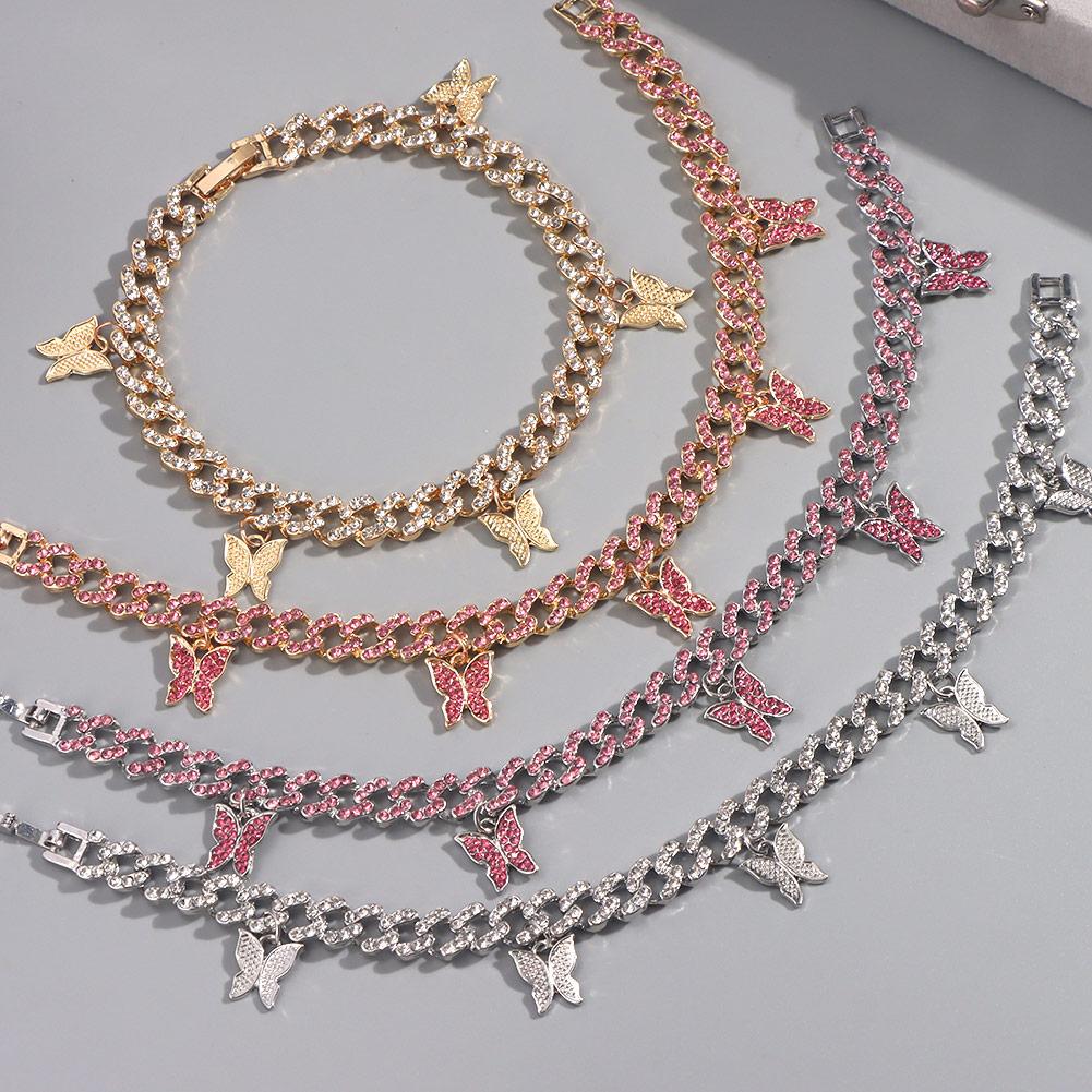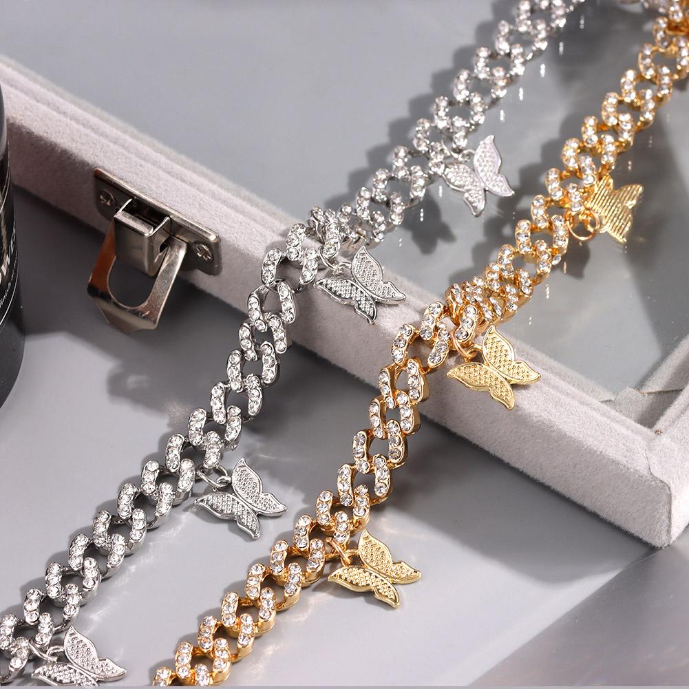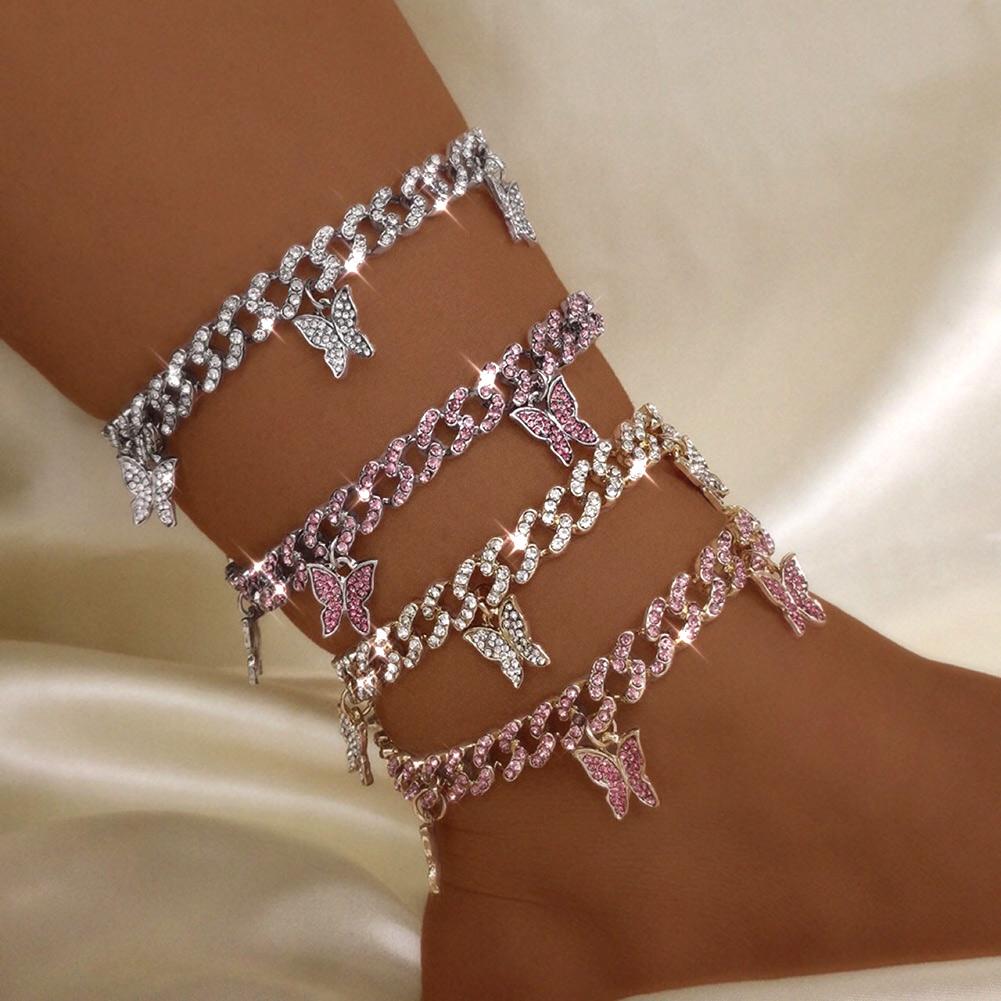 Браслеты на лодыжку из кубинской цепочки со стразами и замороженными стразами для женщин в стиле панк-хип-хоп с кристаллами и бабочками. Ювелирные изделия для босых ног.