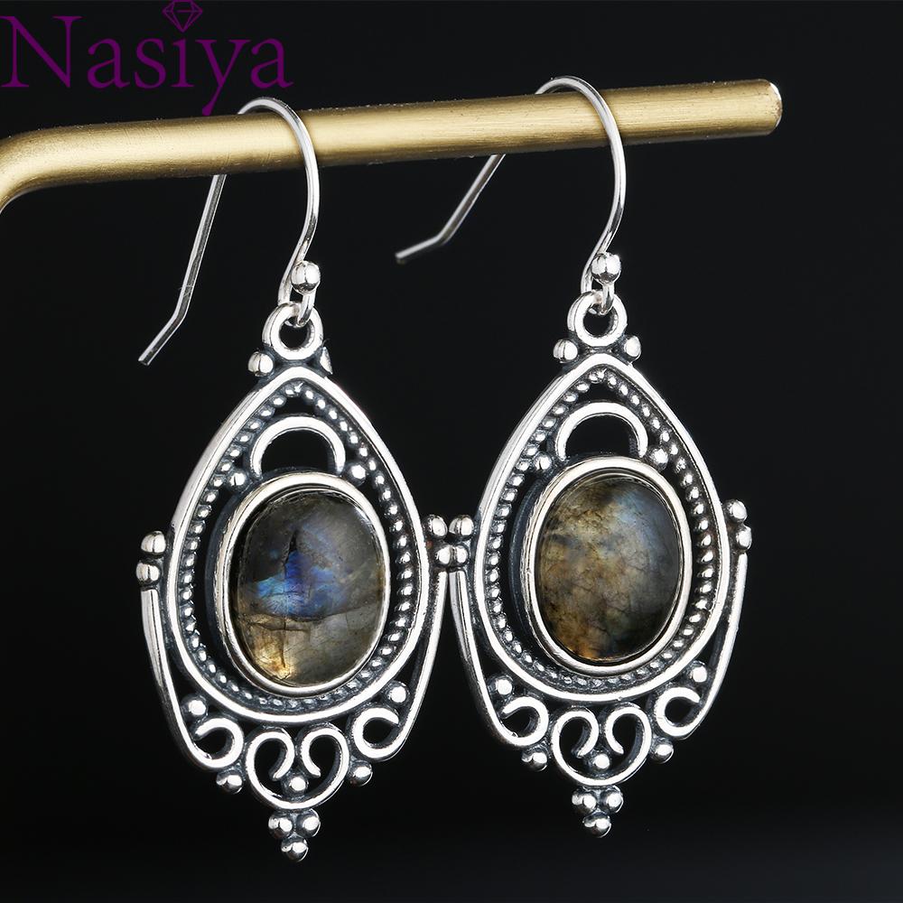 Серебряные ретро серьги из натурального лабрадорита для женщин, овальные, 8x10 мм, камень, винтажные подарочные серьги-гвоздики для вечеринки, оптовая продажа ювелирных изделий