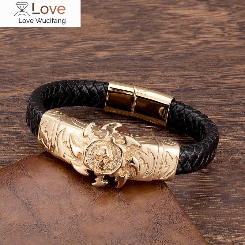 Мужской браслет в стиле панк с магнитной пряжкой, золотые браслеты с черепом, аксессуары из коровьей кожи, браслеты с подвесками, ювелирные изделия из нержавеющей стали, подарки — купить товар онлайн с бесплатной доставкой по всему миру!