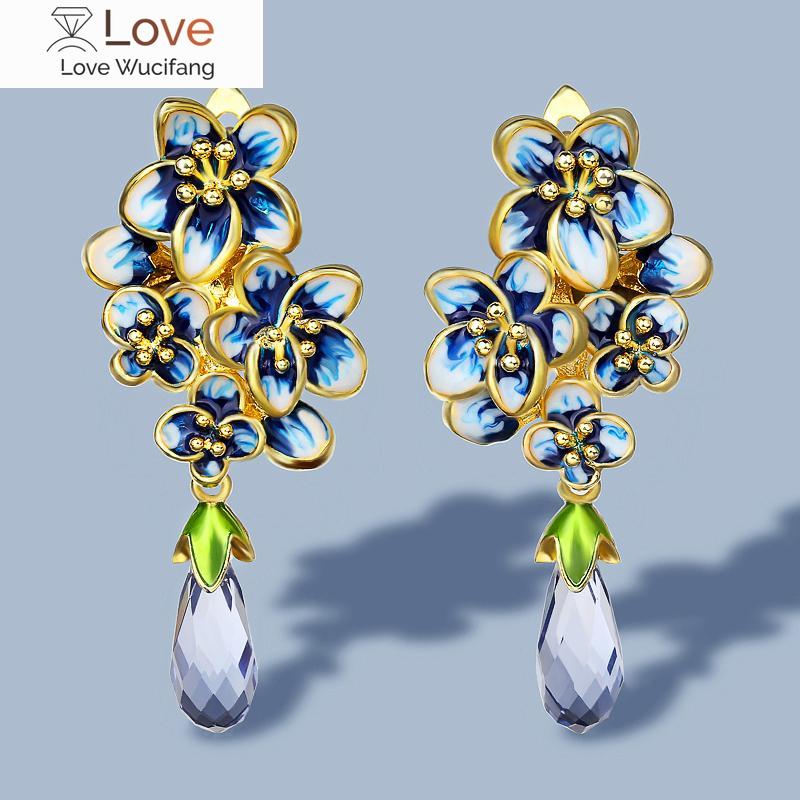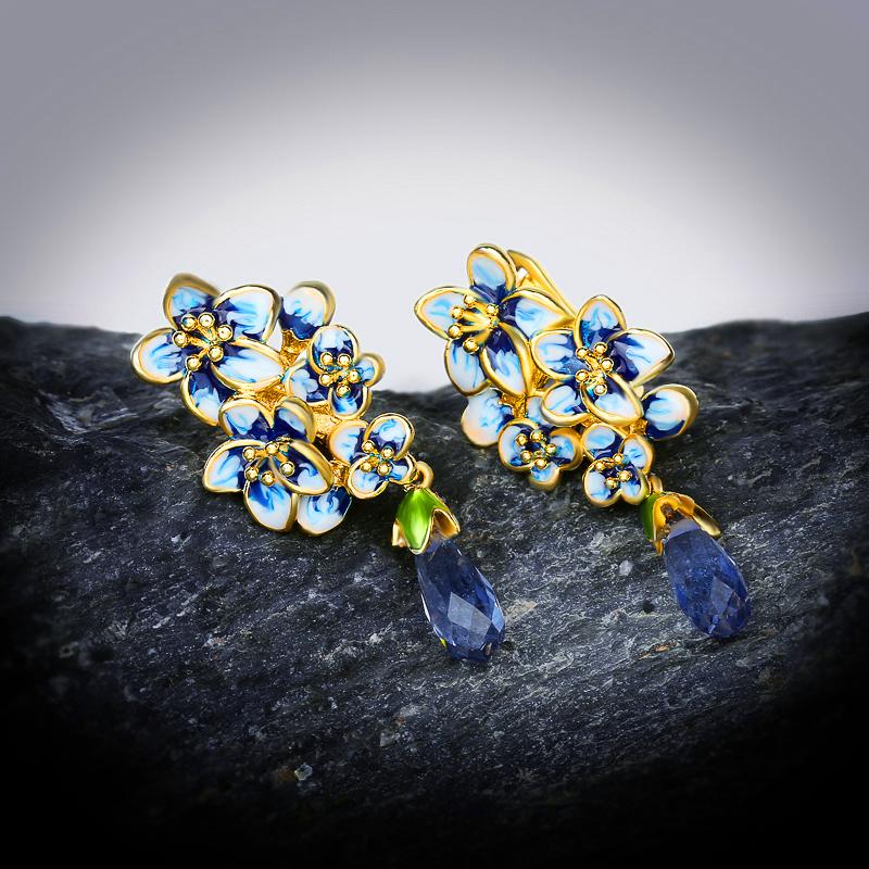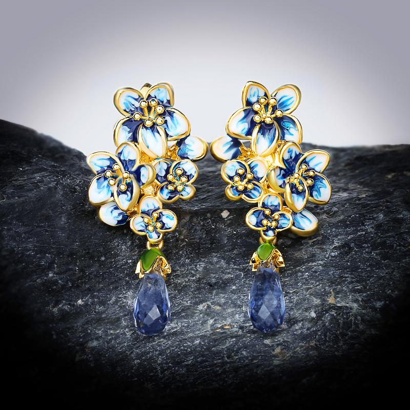 Новые серебряные серьги для женщин, позолоченные, цветные, изысканные, серьги-подвески, ювелирные украшения, эмаль ручной работы