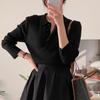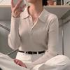 Южная Корея шикарная осень простая элегантная поло воротник полосатый универсальный утягивающий однотонный длинный рукав мягкий клеевой трикотаж