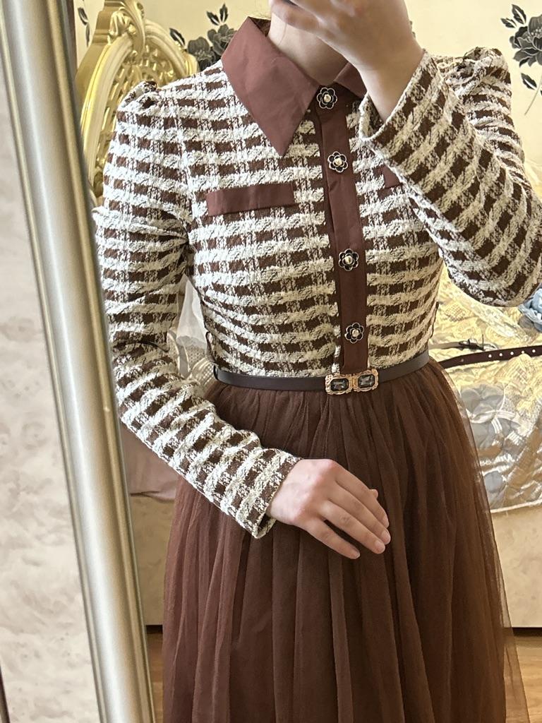 Новое осеннее маленькое ароматное платье-рубашка с отложным воротником в клетку и сеткой, женское вечернее платье с пуговицами-лепестками и поясом