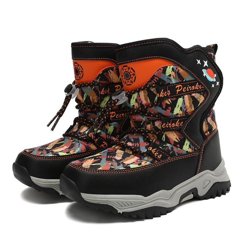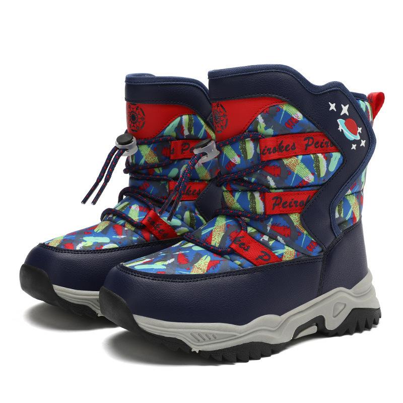 Мальчики осень и зима утепленные зимние ботинки с подкладкой для детей среднего и большого размера нескользящие спортивные ботинки