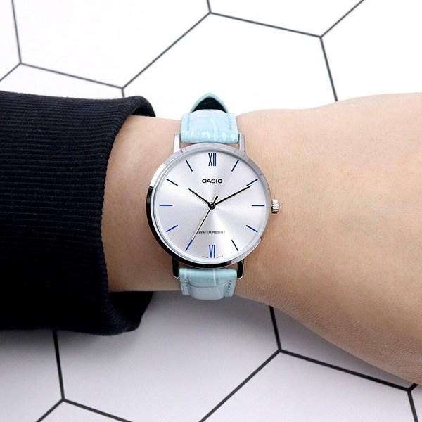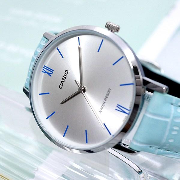 Casio Женские часы Retro Pastel среднего размера с тонким кожаным ремешком