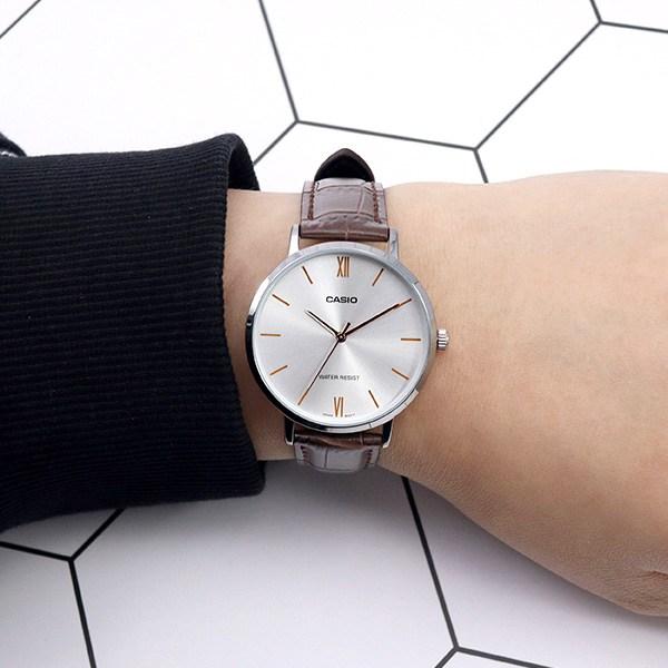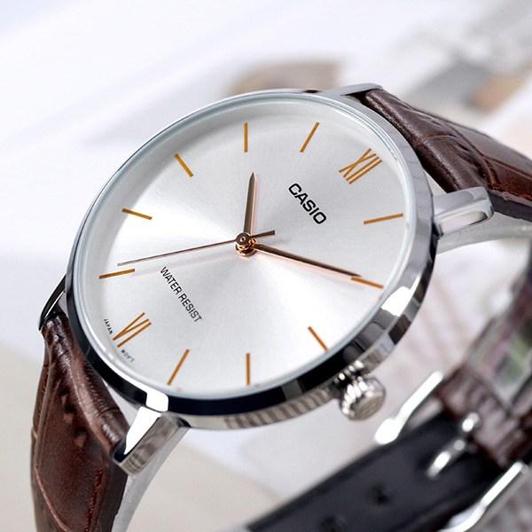 Casio Винтажные круглые тонкие женские повседневные кожаные часы среднего размера