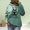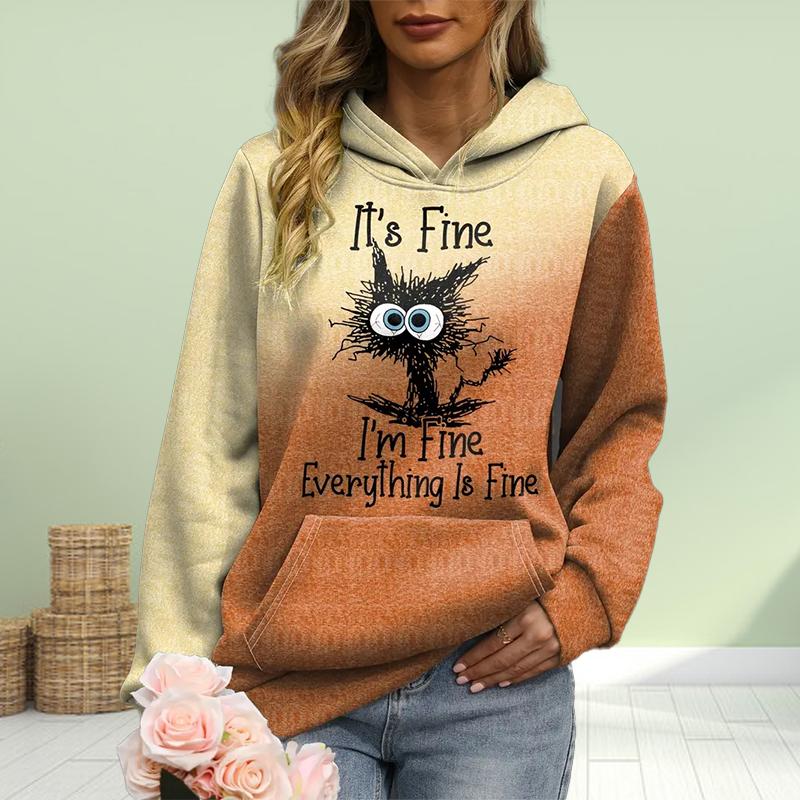 Женская мода оранжевый буква котенок принт свободные толстовки топы блузка свитшот повседневный длинный рукав пуловер топы