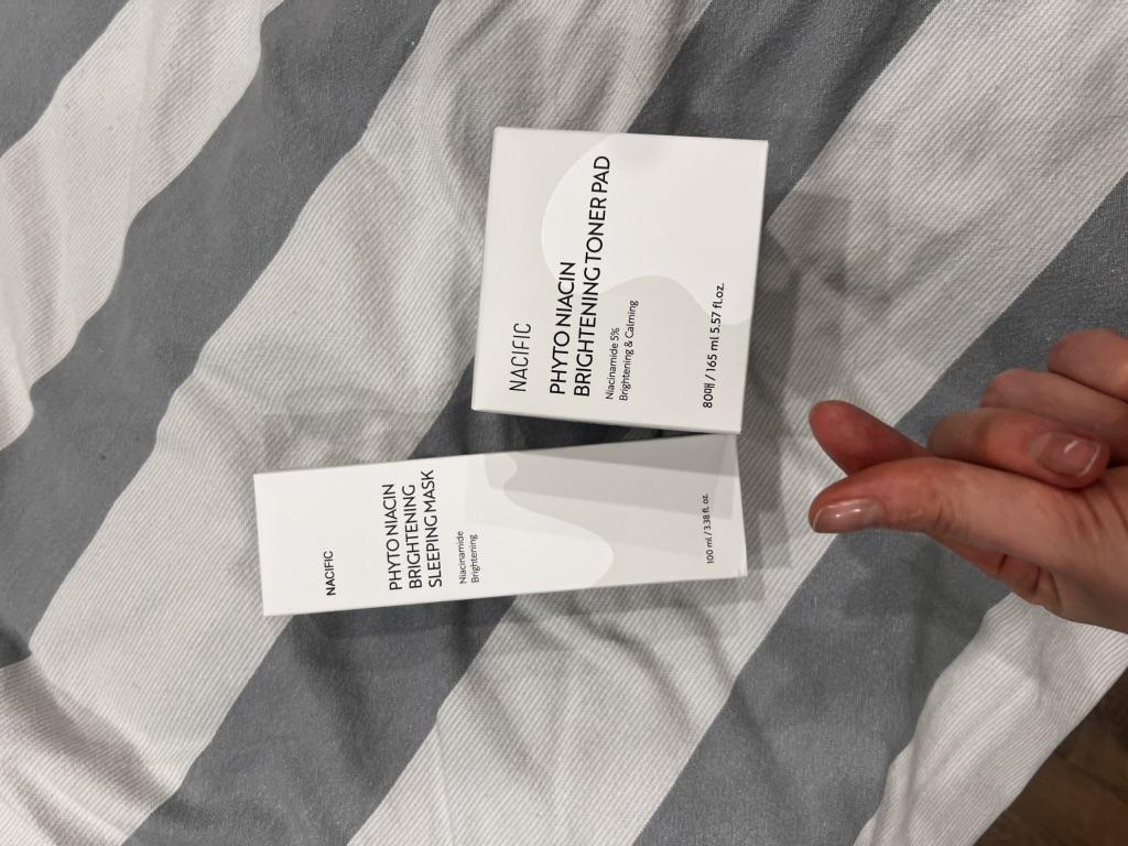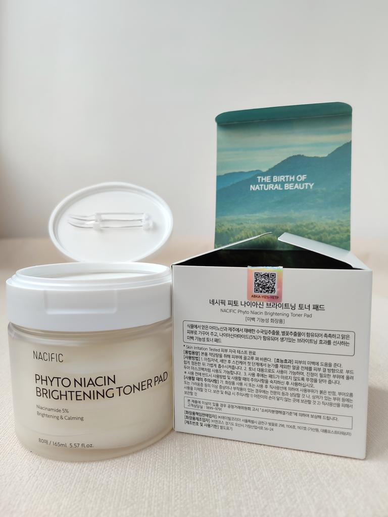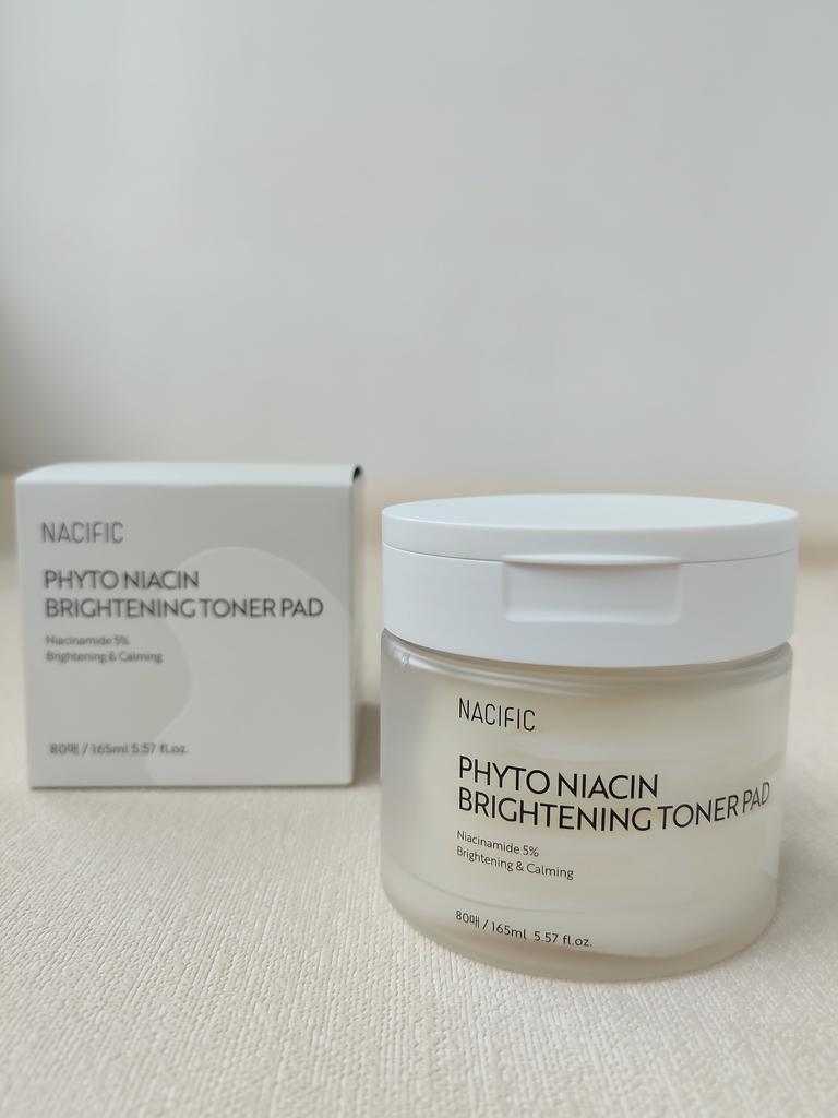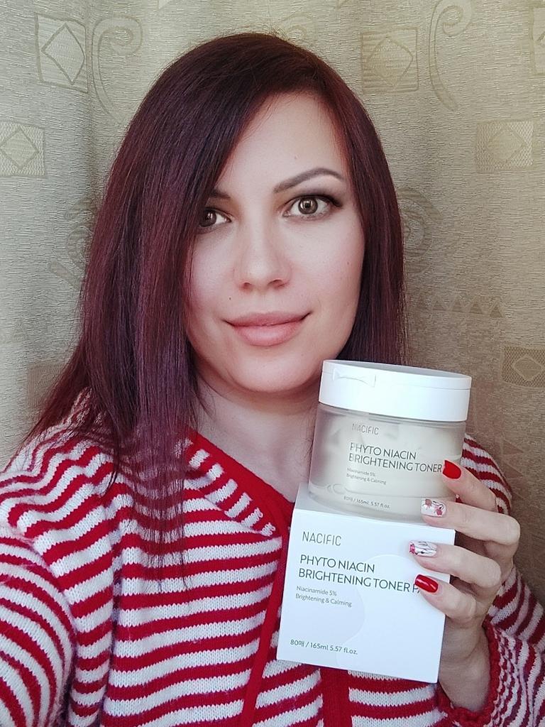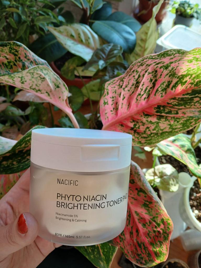 Тонер-пэды Phyto Niacin Braghtening Toner Pad от любимого корейского бренда NACIFIC Доставка заняла 21 день до отделения Новой Почты. Средство в удобной пластиковой баночке, в комплекте с пинцетом. Баночка с пэдами в коробочке, а также, надёжно упакована в пупырку и почтовую коробку. Срок годности до 2027 года. Баночка большая, содержит 80 подушечек пропитанных 165 мл средства, хватит на 2-3 месяца использования. Аромат очень приятный. Пэды содержат ниацин и множество других полезных веществ, которые отлично увлажняют кожу и дарят сияние, осветляют тон и улучшают цвет кожи, а также успокаивают кожу, разглаживают и снимают воспаления. Подушечки можно использовать как маску для лица, держать около 15 минут, они отлично держатся и не спадают. Можно просто протирать кожу после умывания, тонер поможет успокоить, увлажнить кожу и нормализовать уровень ph. Я использую подушечки с сывороткой на начальном этапе ухода, сразу после очищения кожи, протираю лицо и шею перед нанесением сыворотки и крема. Средство дополнительно увлажняет кожу, наполняет ее изнутри и дарит ощущение свежести. Обычно я протираю лицо, а потом оставляю подушечки на щеках, до полного впитывания средства. Хорошо подходит для использования перед нанесением макияжа. Очень удобные в использовании пэды с тонером, эффект от использования потрясающий, кожа такая гладкая и приятная, средство однозначно стоит своих денег, рекомендую!