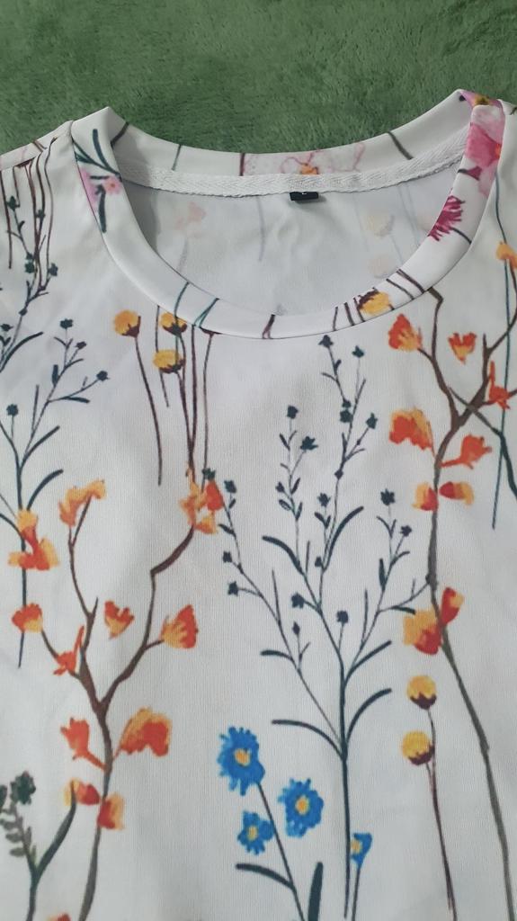 Выиграла блузку за10 тг. Взяла размер больше чем мой. Села очень свободно. Мои параметры 95 78 108. Рисунок чуть бледный. Принт больше, чем на картинке продавца и поэтому нет этого милого эффекта ярких мелких цветочков. Синтетика. Не для жарких температур. Так в целом все норм.