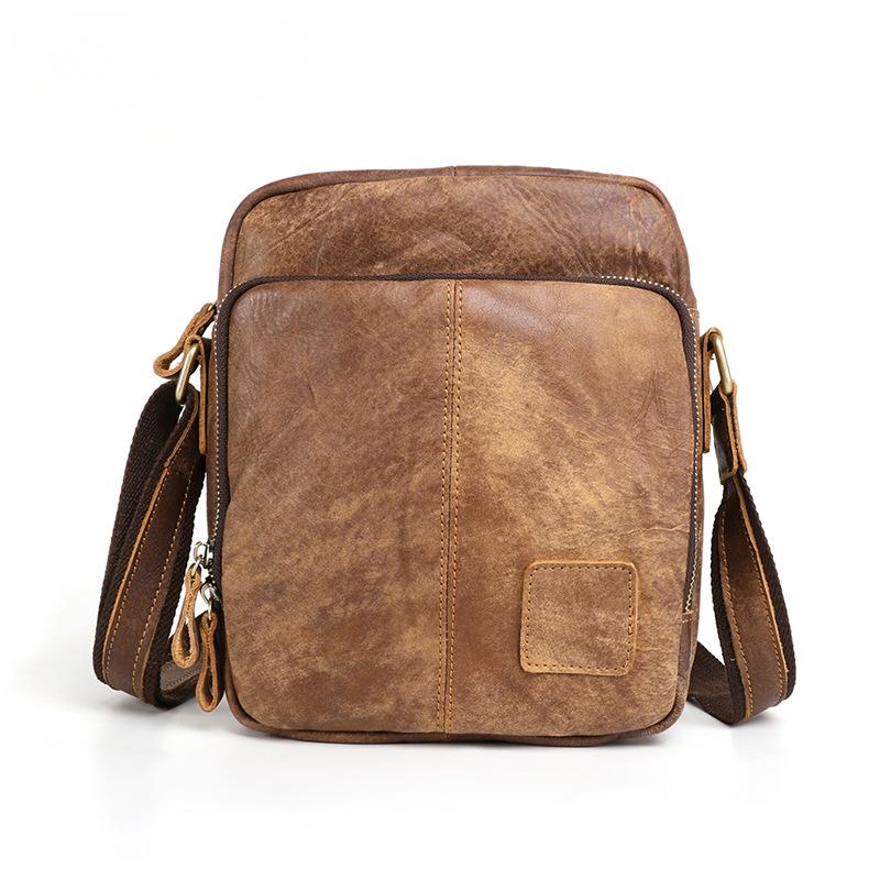 Кожаная мужская сумка Большая вместительная сумка через плечо Сумка-мессенджер Повседневная мужская сумка из коровьей кожи в стиле ретро Мужская сумка через плечо