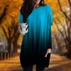 Новинка осени Цветной градиентный принт Плюс Размер Платье Женское O-образный вырез Длинные рукава Повседневные Карманные Платья