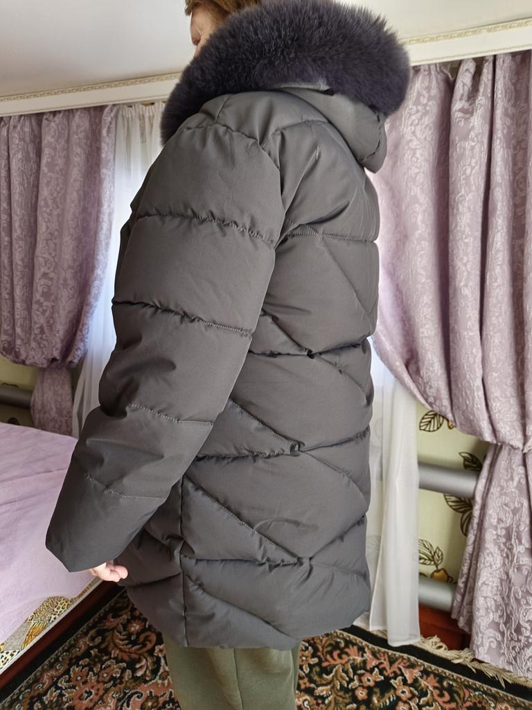 На размер 54 (бедра 120 см) села хорошо, немного с запасом, чтобы поддеть теплый свитер. Опушка куртки не облезает, как вытащили из пакета, сразу красиво распушилась. Куртка сшита качественно, приехала аккуратно упакованная