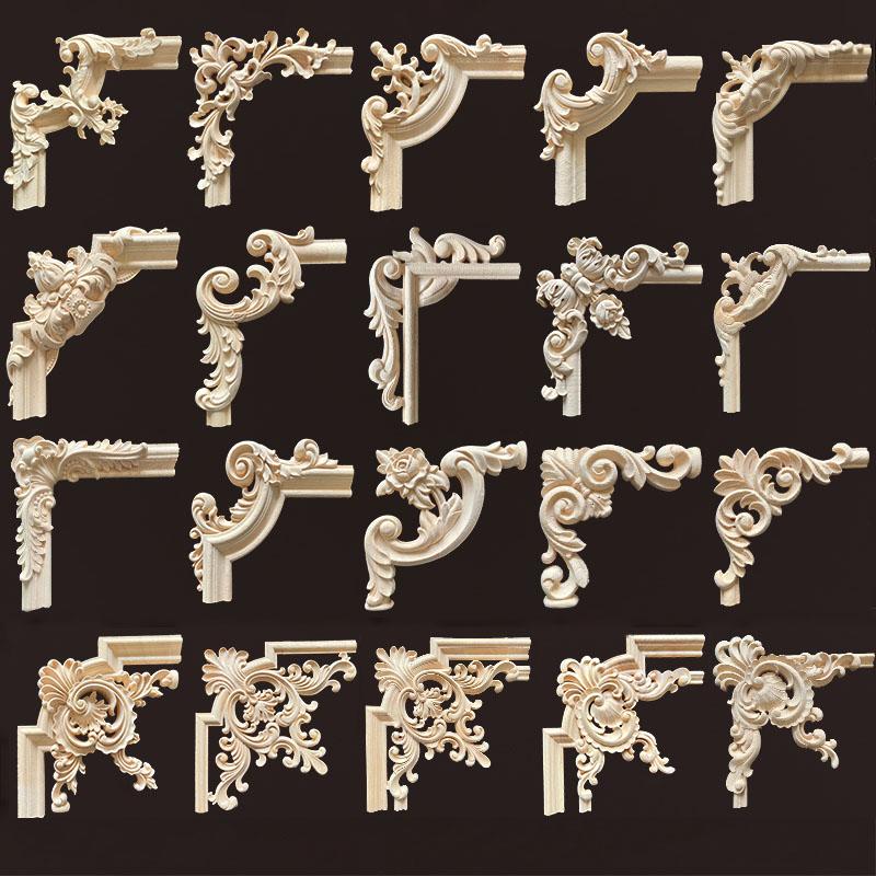 Аппликация из дерева, угловая натуральная цветочная деревянная резная фигурка, ремесло, украшение для дома, аксессуары, фон, настенное украшение, наклейка