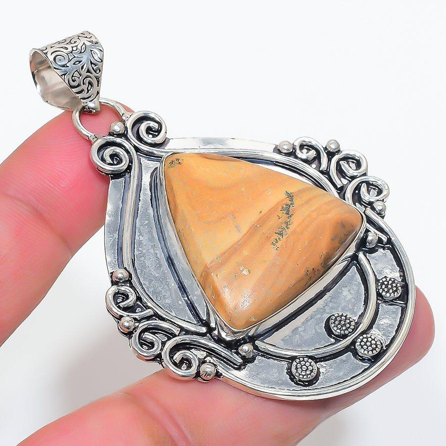 Подвеска из стерлингового серебра 925 пробы с натуральным драгоценным камнем яшмой 2,68 дюйма