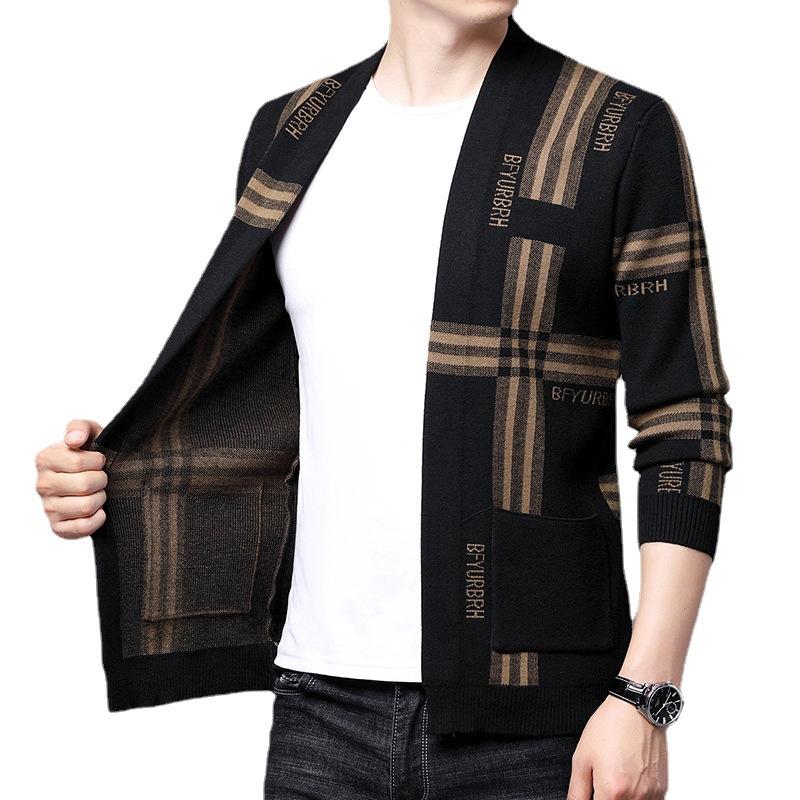 Кардиган мужской свитер куртка, осень новый корейский вариант модный тренд сращивание трикотажный красивый пиджак мужской топ