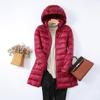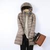 Упитанный пуховик больших размеров на осень и зиму, легкий и тонкий пуховик для женщин средней и длинной длины 100кг жира мм отстегивающаяся шапка, легкая куртка.