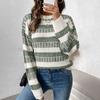 Осенне-зимний женский повседневный полосатый свитер с ярким принтом